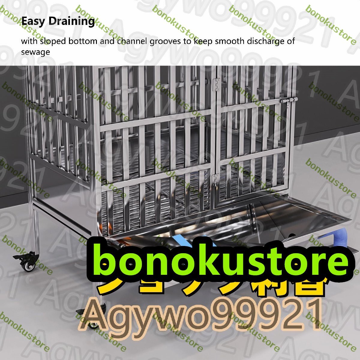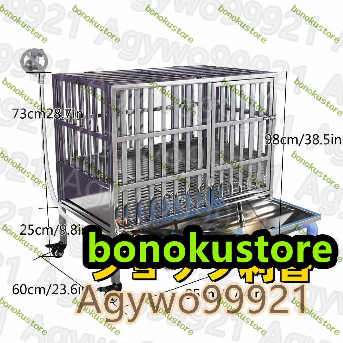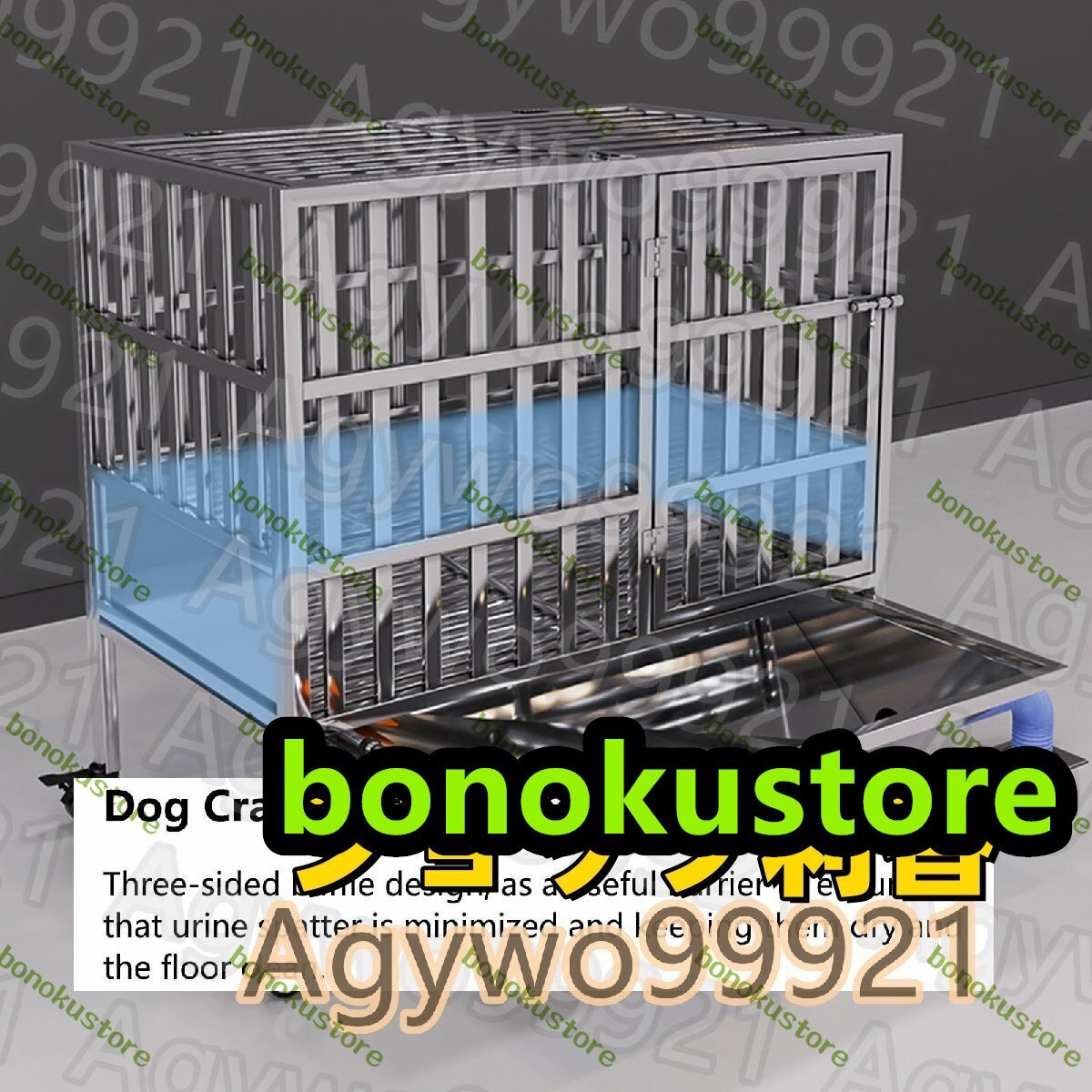 犬用ケージ キャスター付き ペットケージ 犬用トイレ付き、ステンレス製の犬用ケージ ダブルドア 犬小屋 小・中型犬用 室内外兼用(95cm/37.4in)