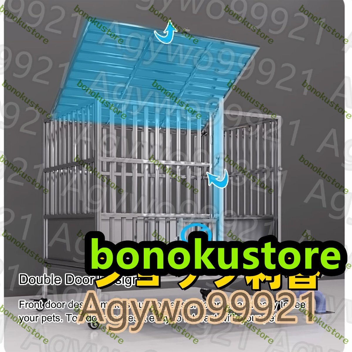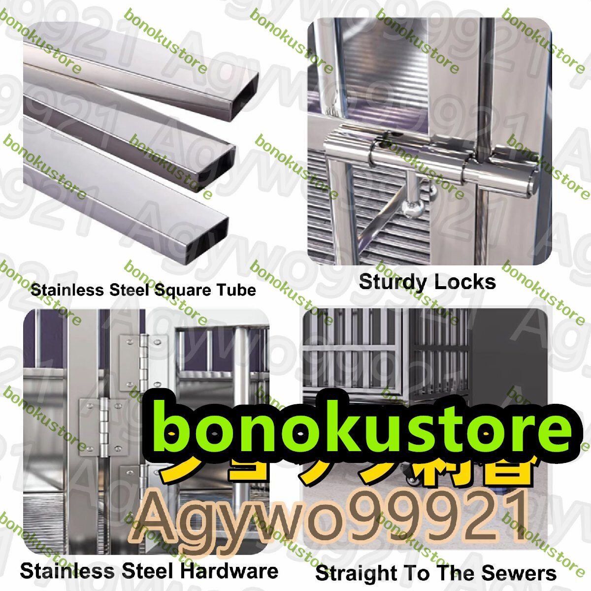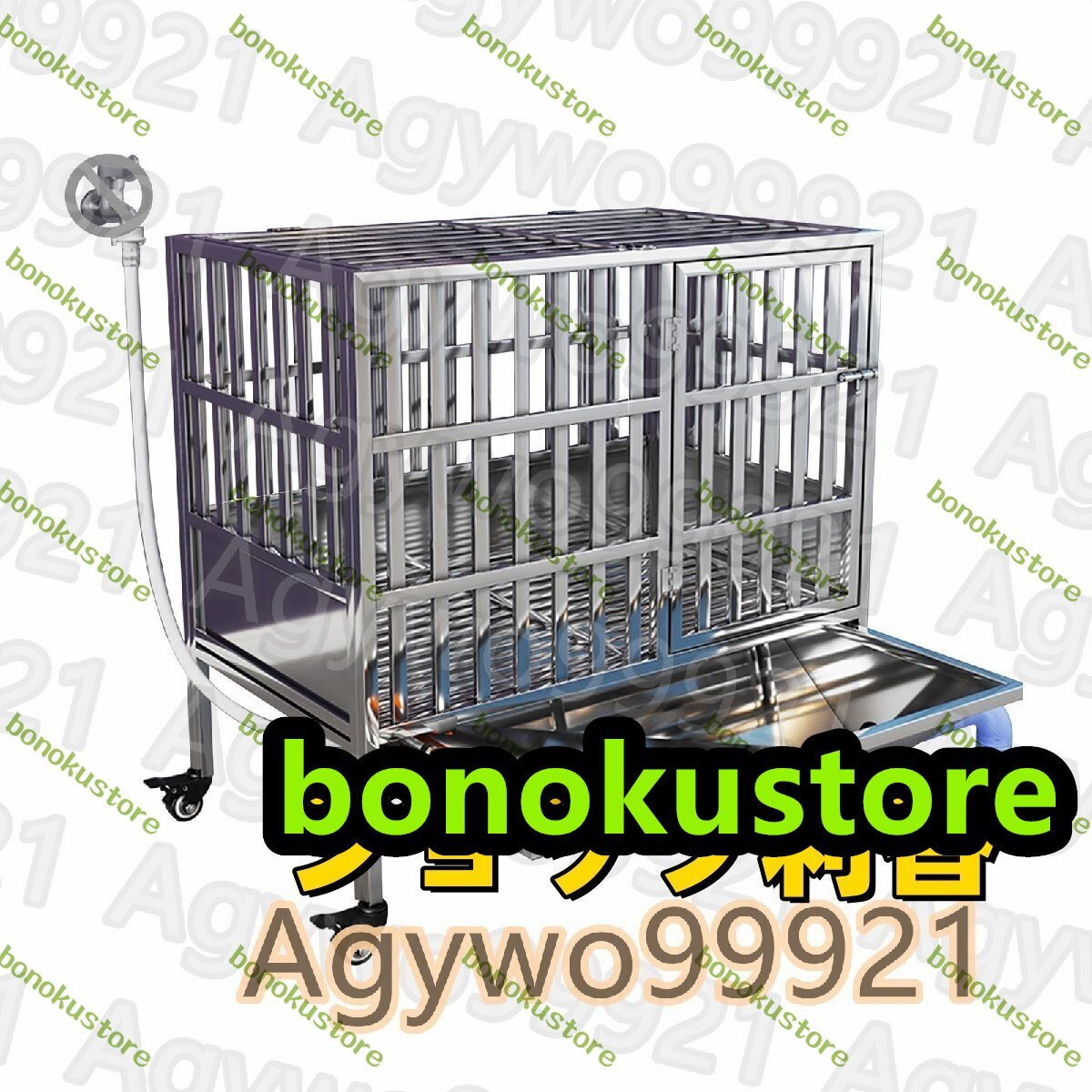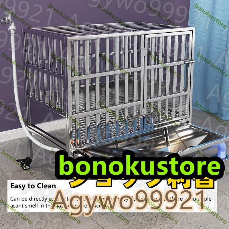 犬用ケージ キャスター付き ペットケージ 犬用トイレ付き、ステンレス製の犬用ケージ ダブルドア 犬小屋 小・中型犬用 室内外兼用(95cm/37.4in)