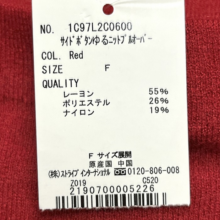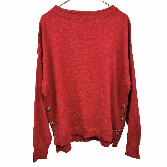 商品タイトル | 【新品】earth music&ecology 薄手 ゆるニット セーター サイドボタン 長袖 無地 レーヨン×ポリ×ナイロン F レッド 赤 レディース |