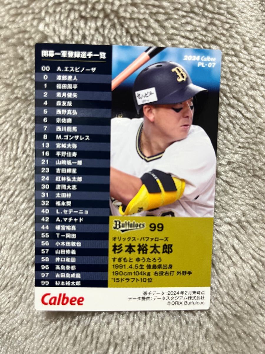 カルビー 2024 プロ野球チップス トレーディングカード 選手会長カード PL-07 オリックスバファローズ 99 杉本裕太郎