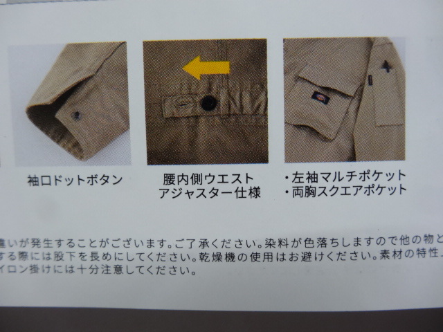 コインポケ付き、 袖口ドットボタン、、腰内側ウエストアジャスター仕様、腰帯後ろ反射パイピング