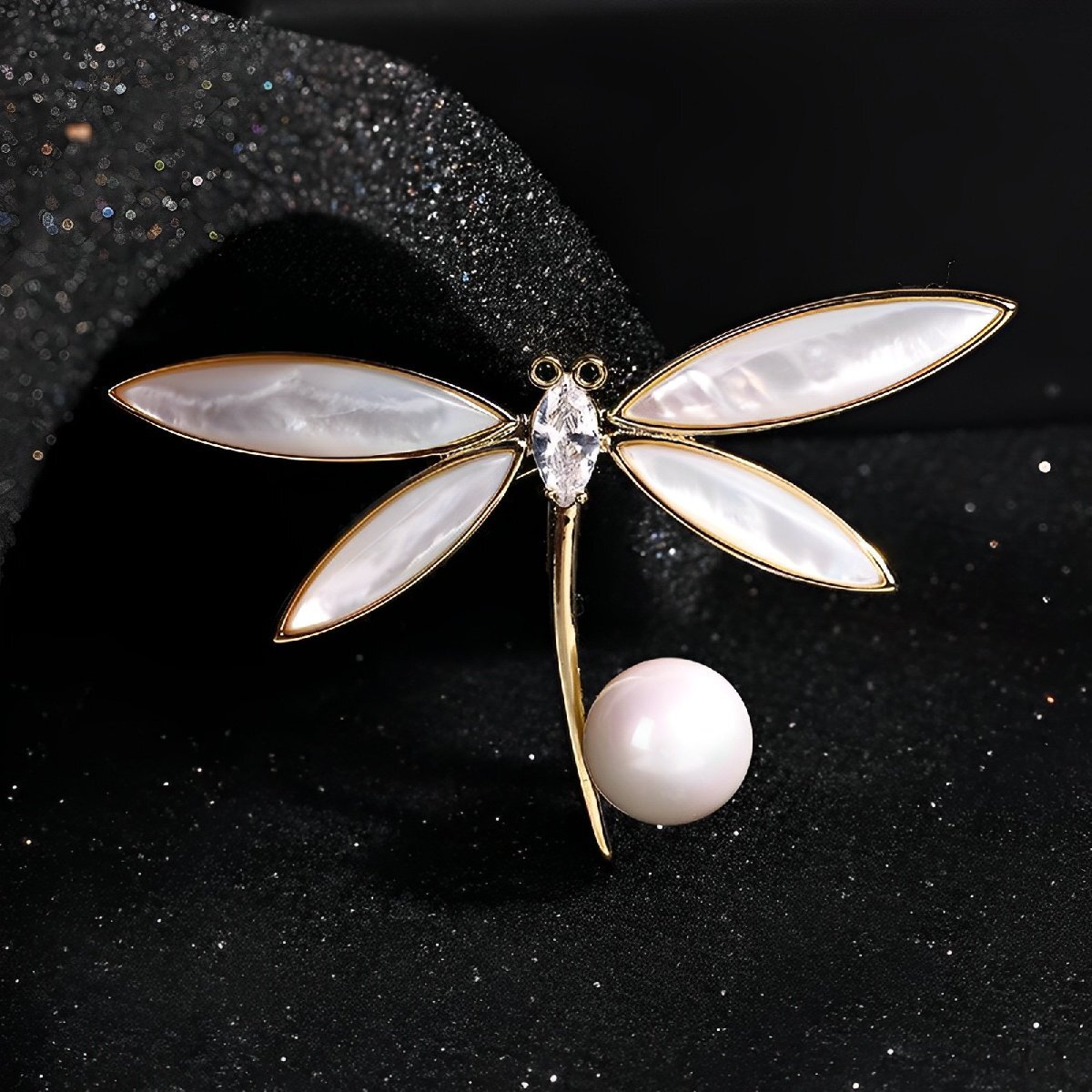 【蜻蛉】パール 白トンボ 2WAY ペンダントトップ兼ブローチ