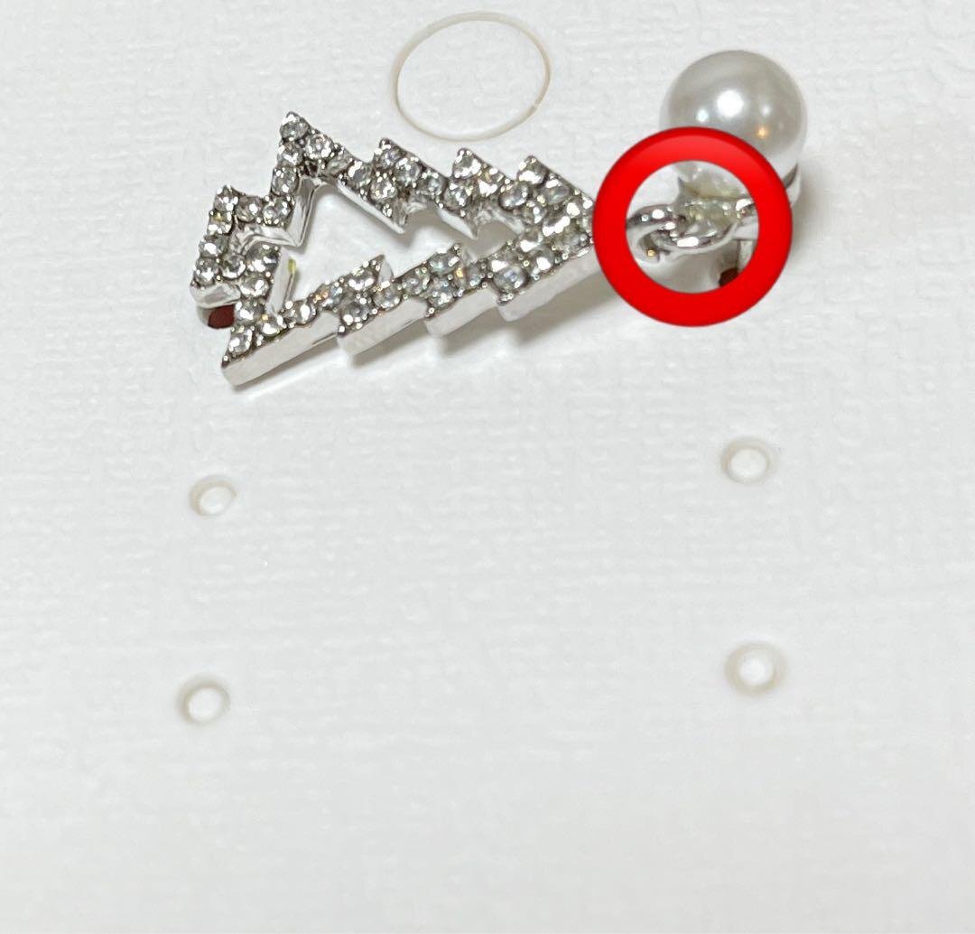 パールと金具の間に接着剤が溢れた跡があります。5番の写真をご参考ください。