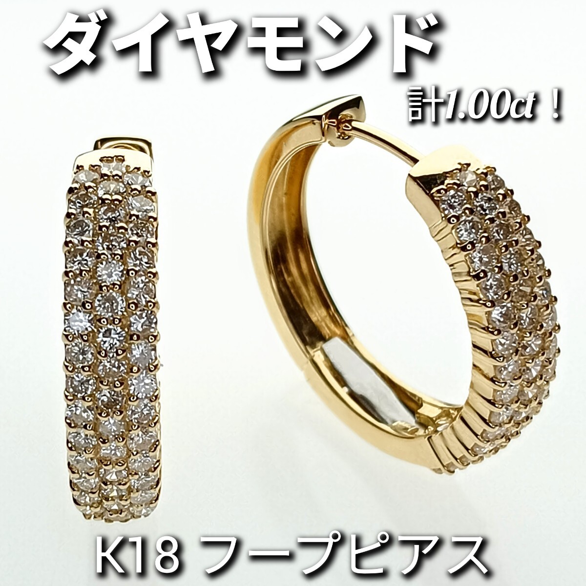 ☆パヴェピアス☆ ダイヤモンド 計1.00ct!! K18 フープピアス 6.3g ☆新品同様磨き☆