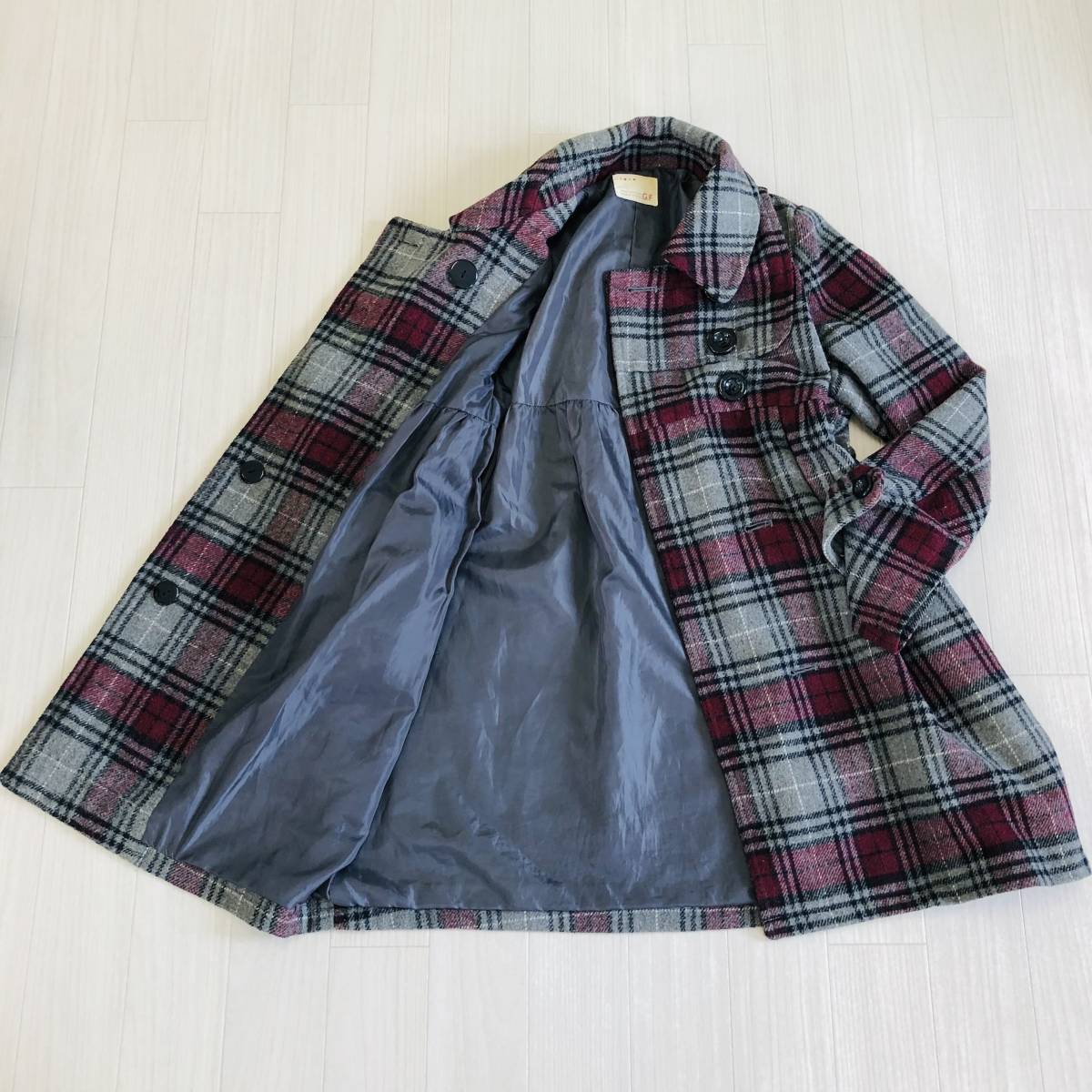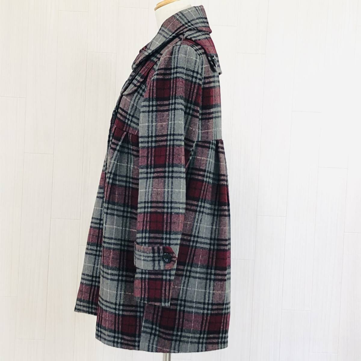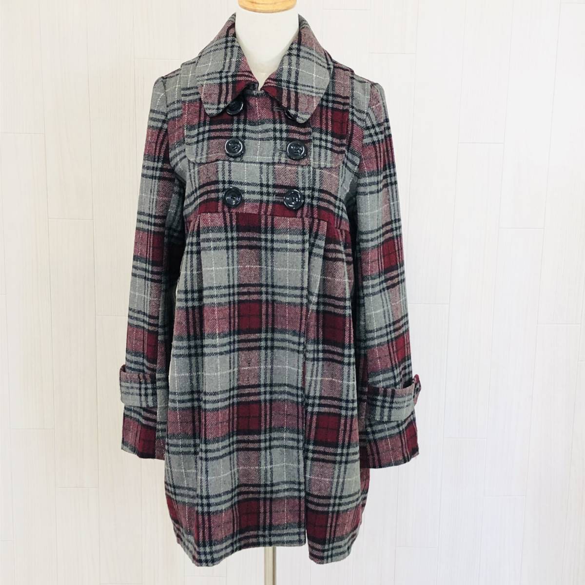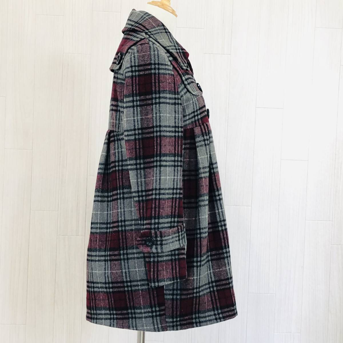 YAS0340 レディース アウター コート ロング ひだ付 グレー 灰 ワインレッド 赤 チェック柄 タータンチェック 冬 エレガントガーリーチック