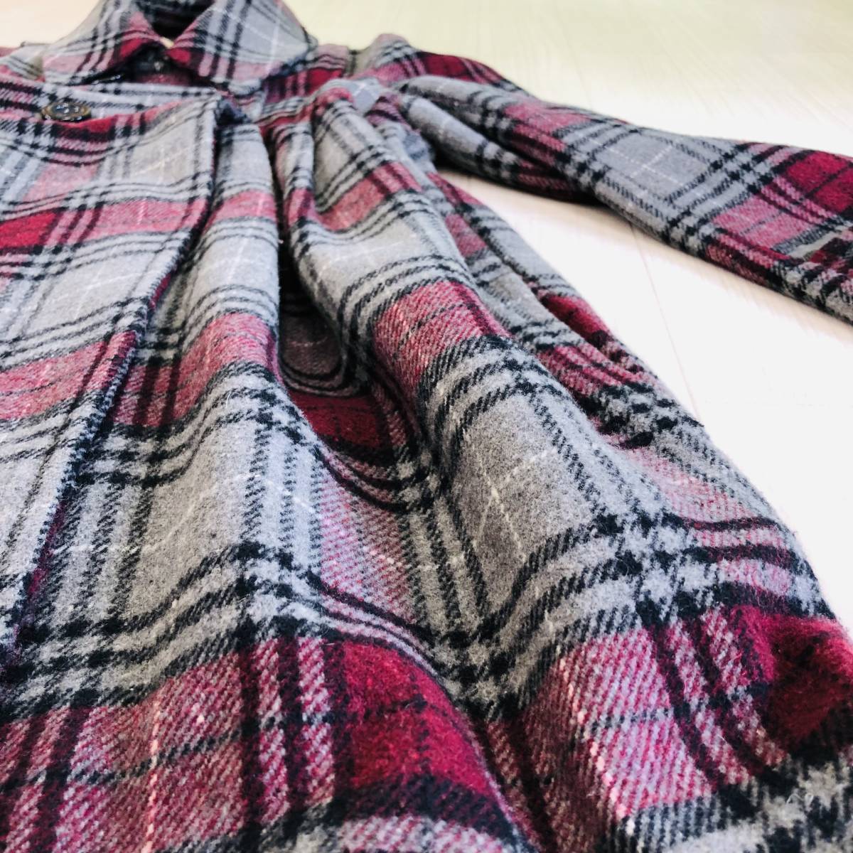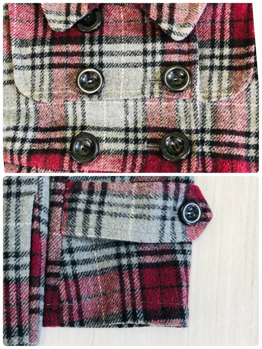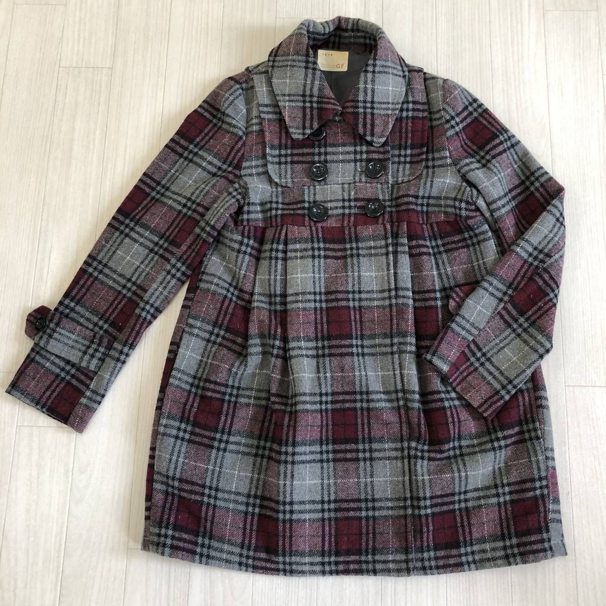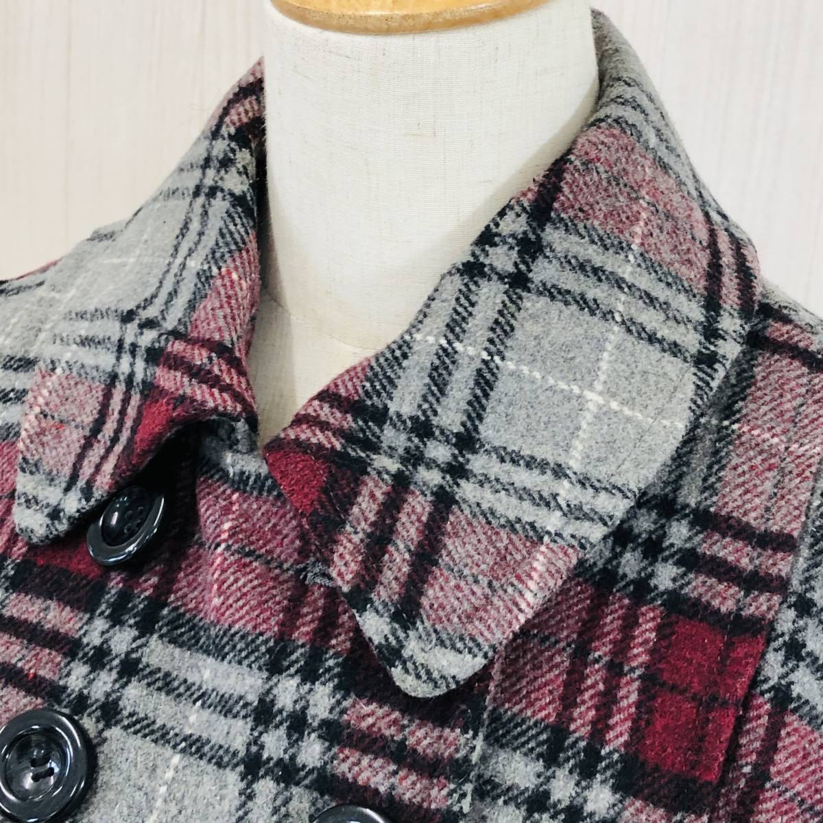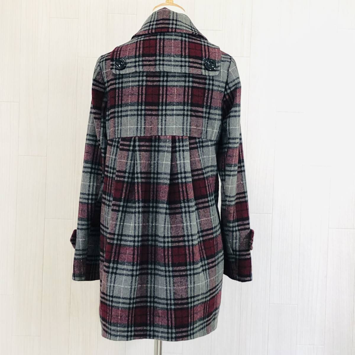 YAS0340 レディース アウター コート ロング ひだ付 グレー 灰 ワインレッド 赤 チェック柄 タータンチェック 冬 エレガントガーリーチック