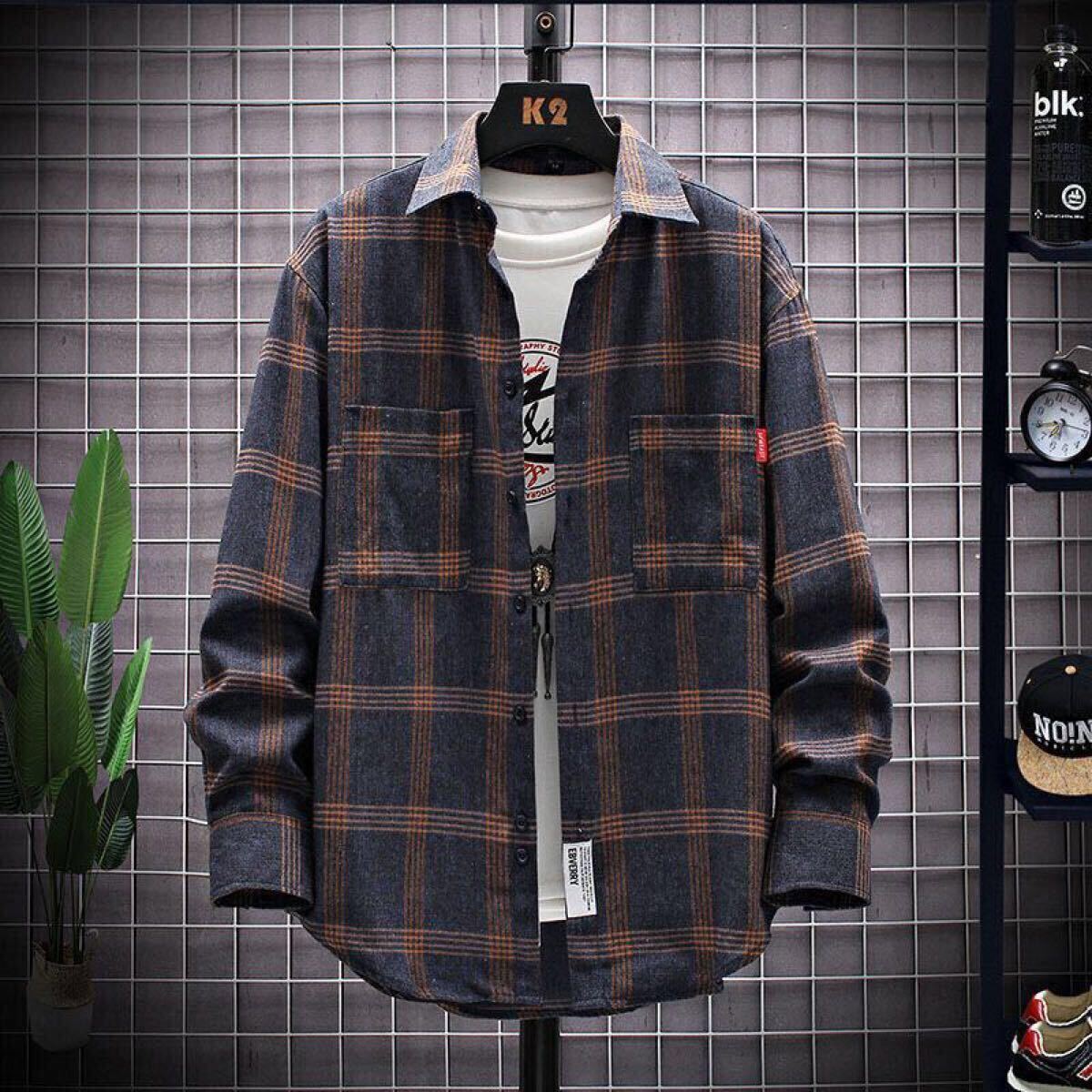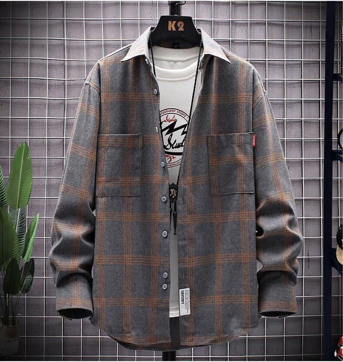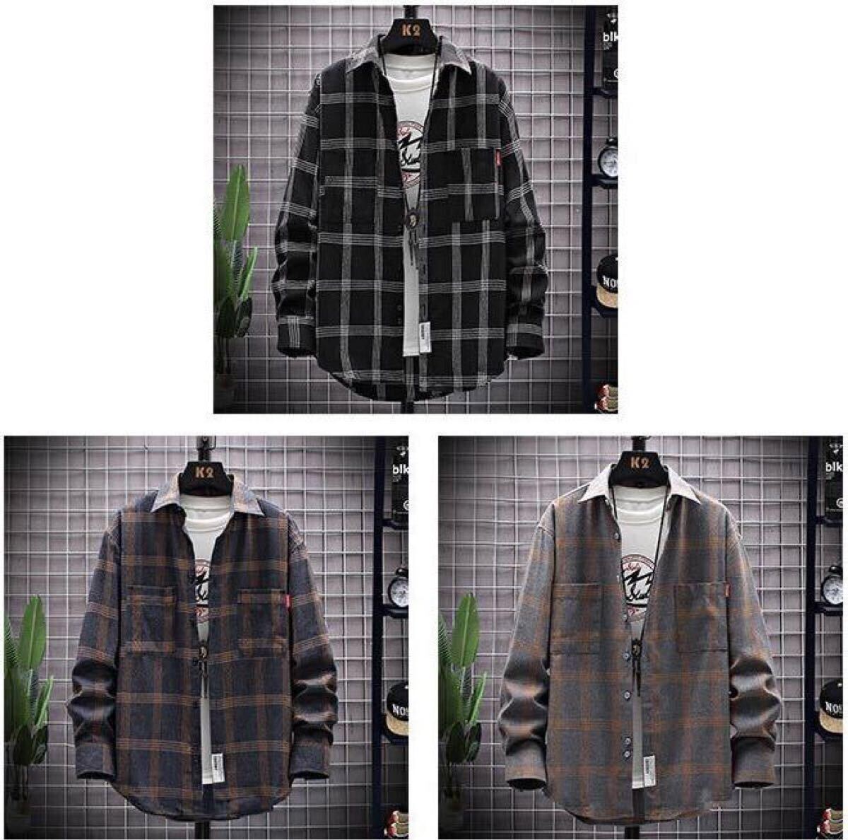 メンズ チェックシャツ アウター トップス 大きいサイズ 開襟シャツ 韓国風 長袖 春秋夏 ゆったり カジュアルJCAS034(3色M-5XL)