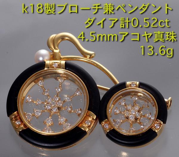 マテリアル | 天然ダイア合計0.52カラット(カラット刻印あり)、アコヤ真珠、k18製 |