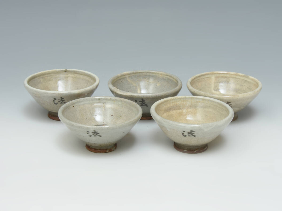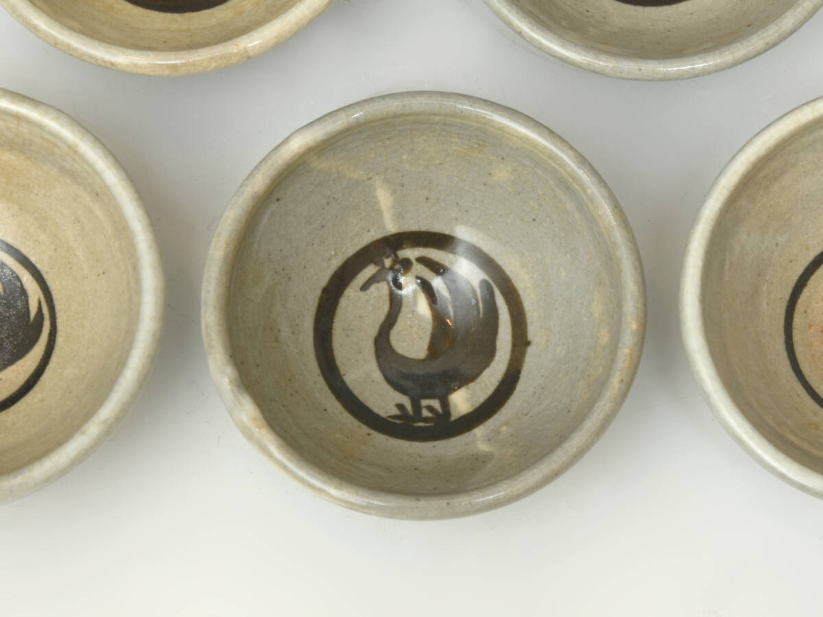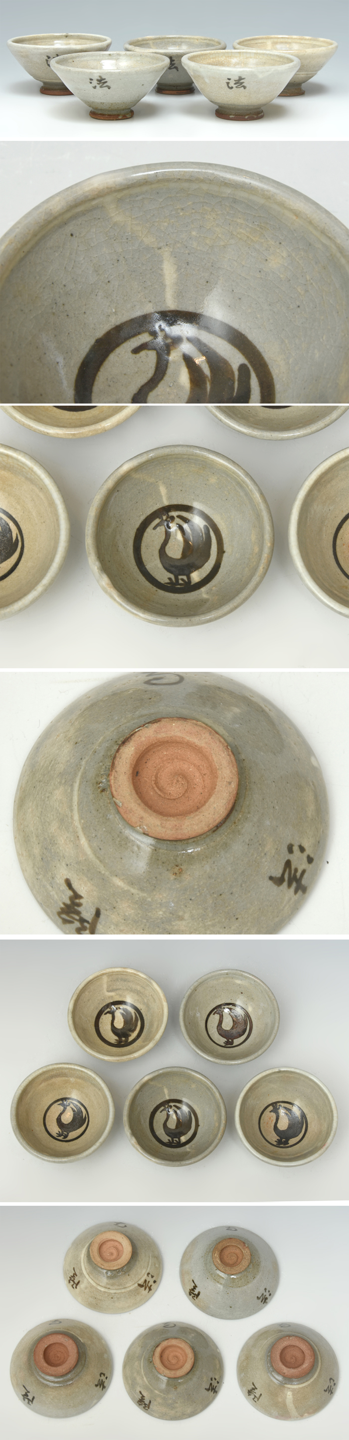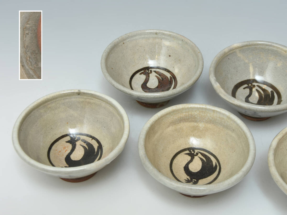 赤膚焼 尾西楽斉(造)斑鳩 法隆寺 粉引汲出 五客揃 陶磁器 茶碗 茶道具 現代工芸 |