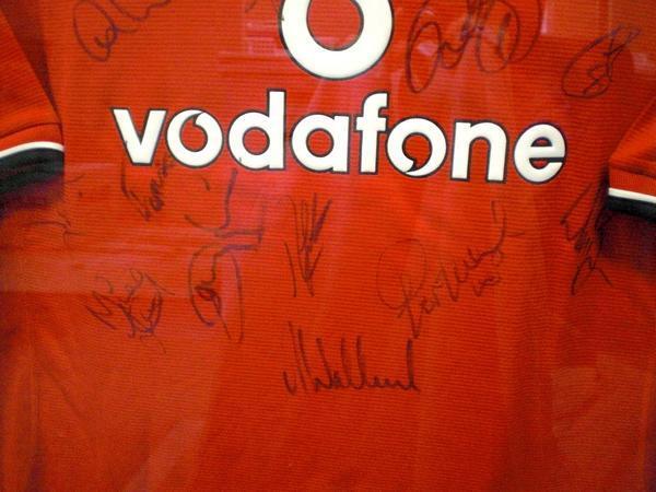 デイヴィッド・ベッカムやライアン・ギグスを始め、他15名プレイヤーの直筆サインが入ったチームシャツです。
