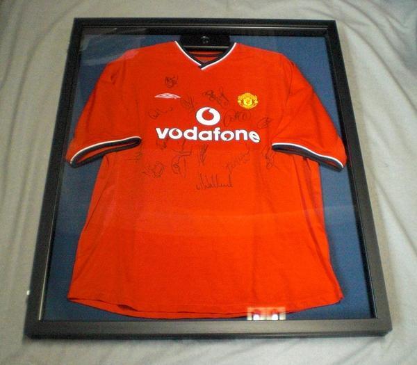 2001~2002年 MU 15名プレーヤー 直筆サイン付チームシャツ(額付)