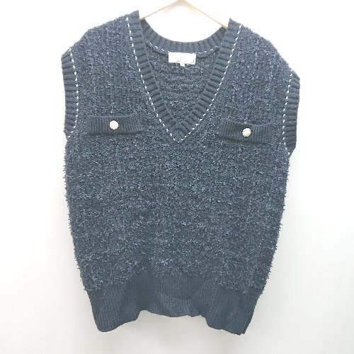 ◇ ROPE' PICNIC ロペピクニック ケーブル Vネック 起毛 ステッチ ノースリーブ ベスト サイズ38 ネイビー系 レディース E