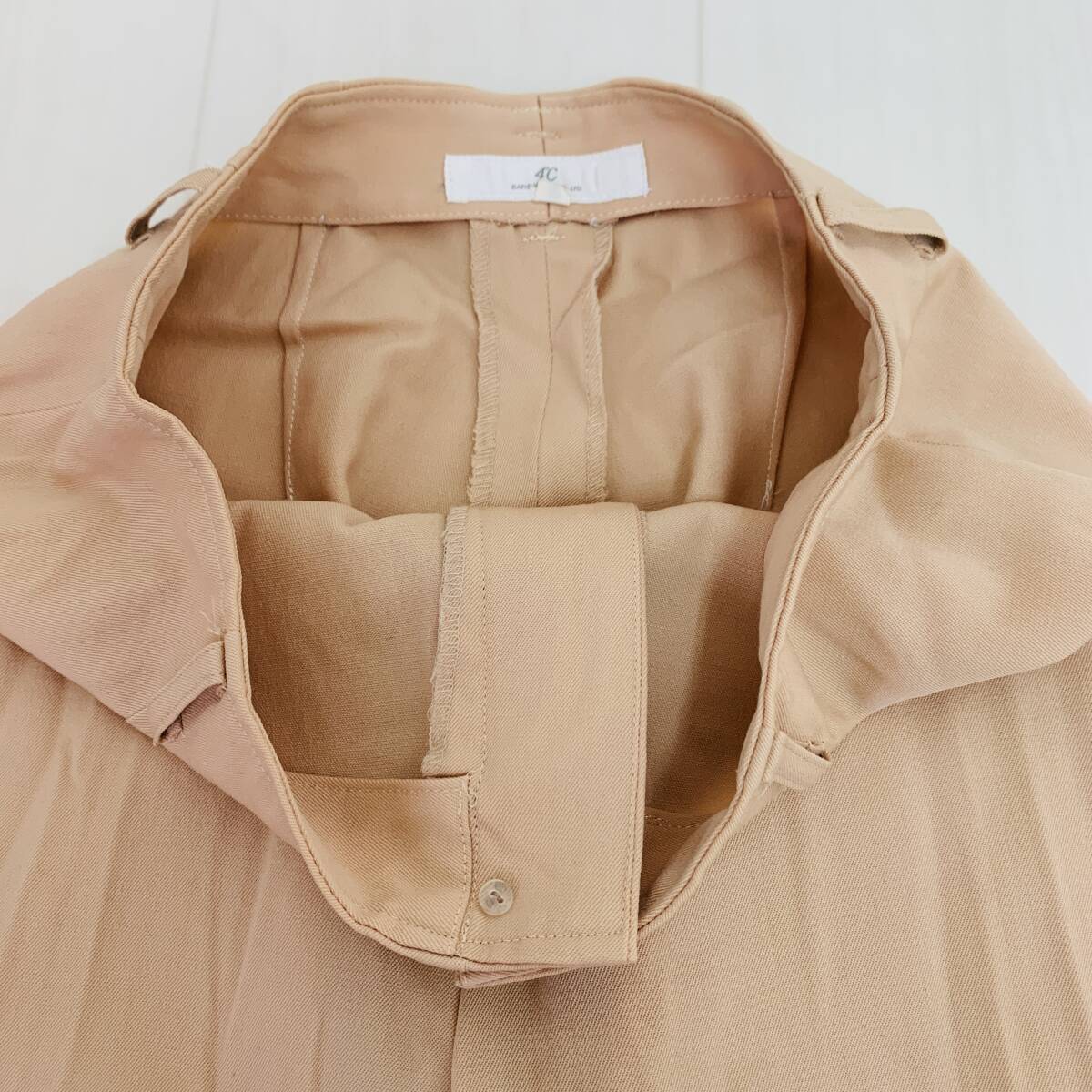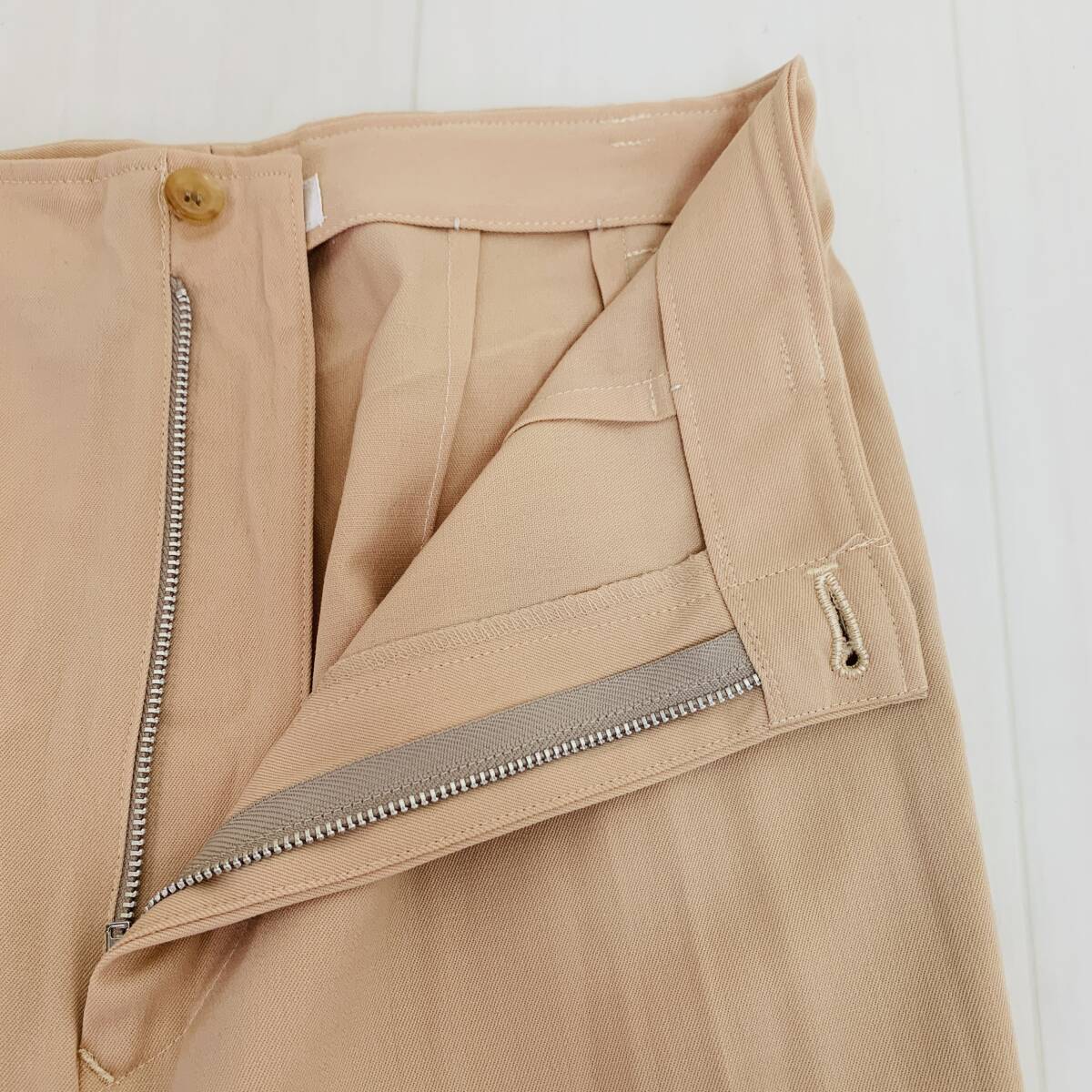 YH2021 4℃ レディース 日本製 カジュアルパンツ 毛混 ベージュ 無地 薄手 ストレッチ素材 裾スリット Mサイズ ヨンドシー 万能 USED 古着