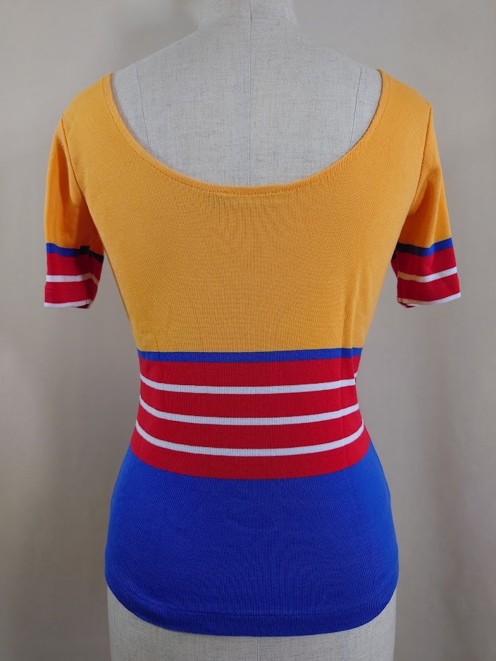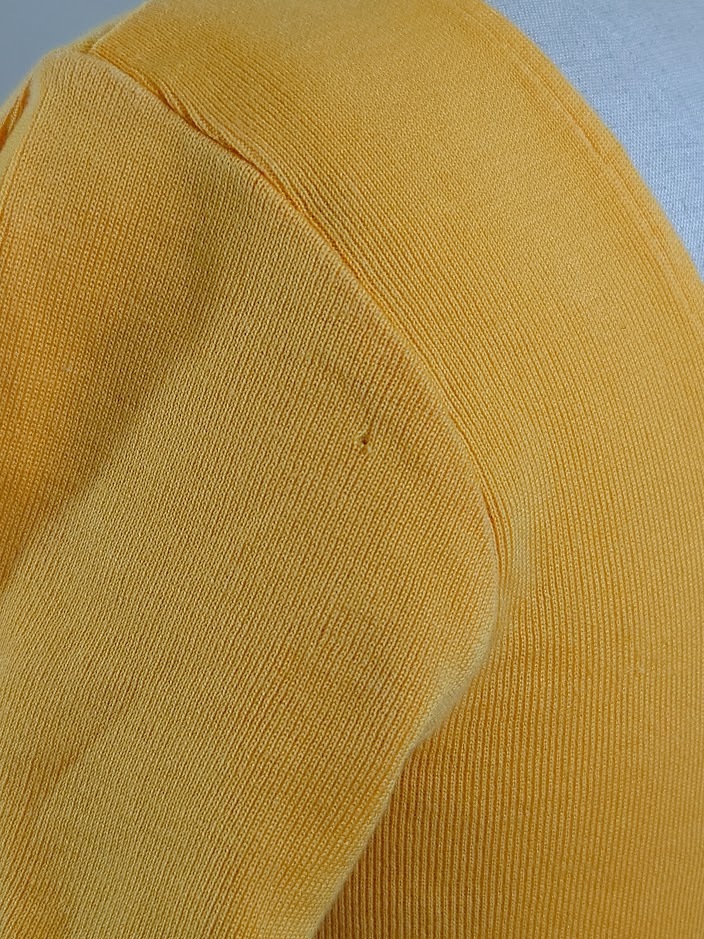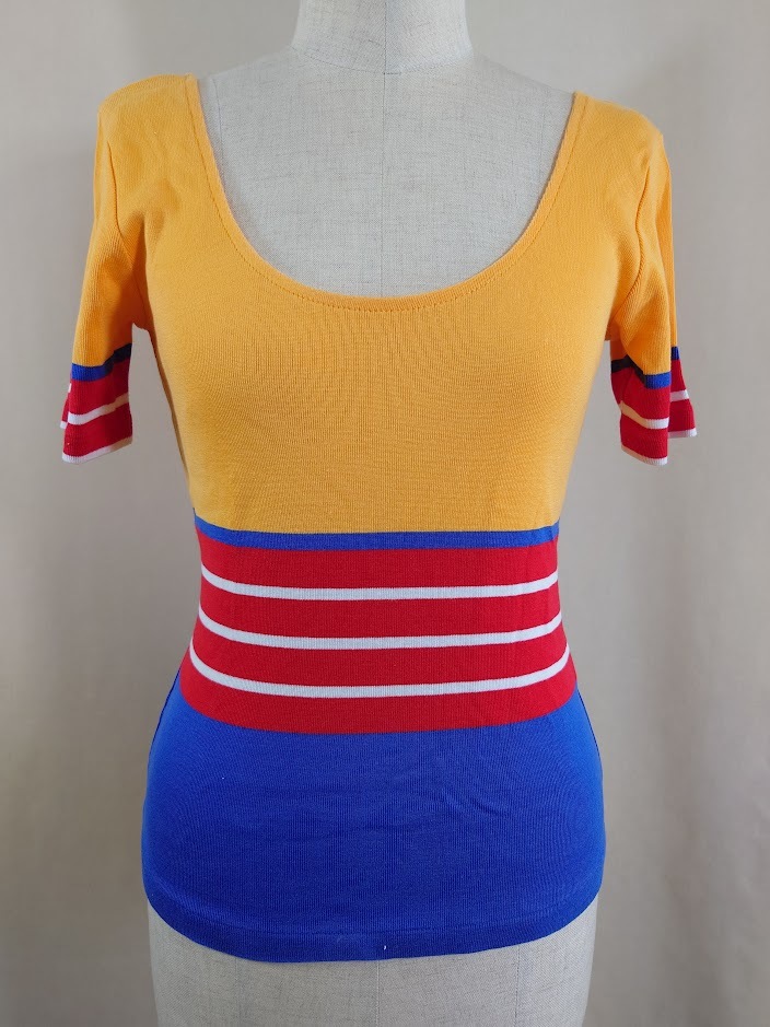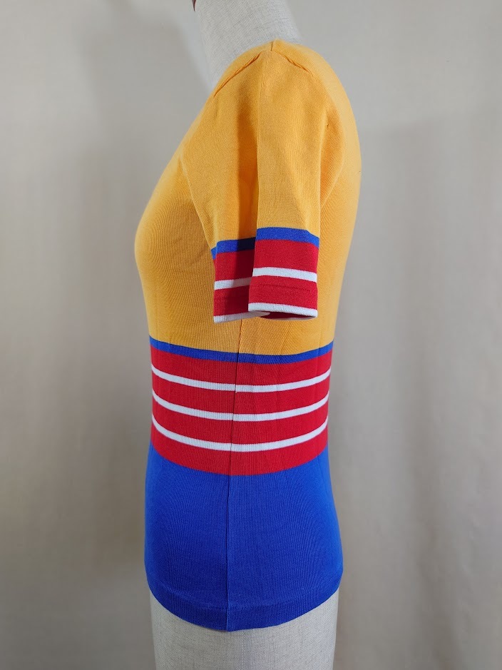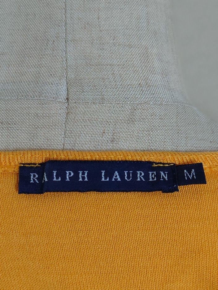 商品説明 | ラルフローレン半袖カットソー 色: オレンジ・レッド・ネイビー・ホワイト 表示サイズ: M 平置き実測寸法 肩幅:38cm 袖丈:19cm 胸回り:38(x2)cm ウェスト回り:33.5(x2)cm 裾回り:37(x2)cm 肩先から裾までの長さ:54cm 状態 左腕の上から7cmくらいのところに画像7のような引っ掛けキズが あります。 |