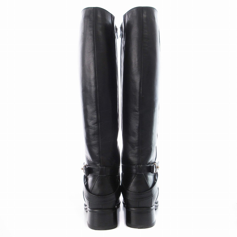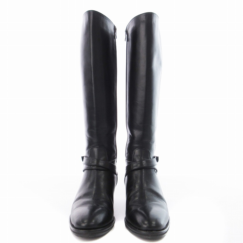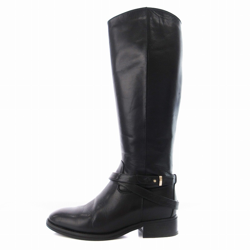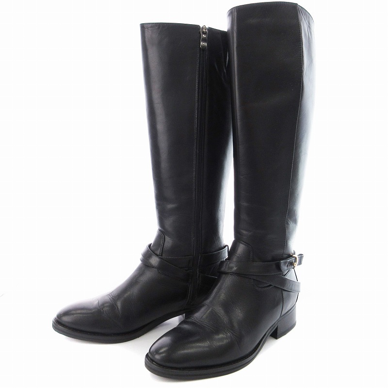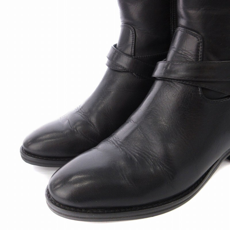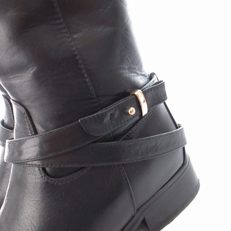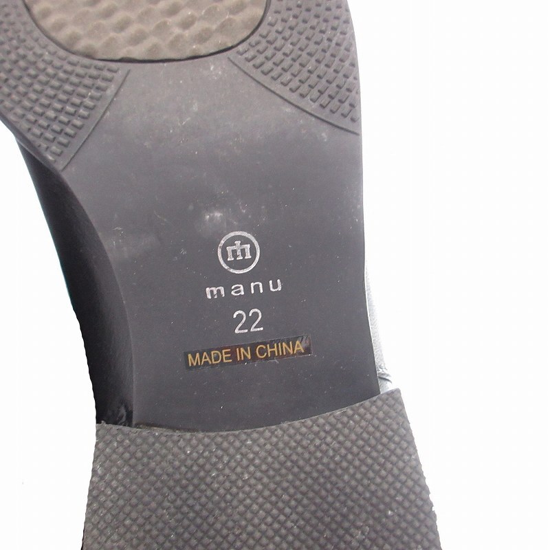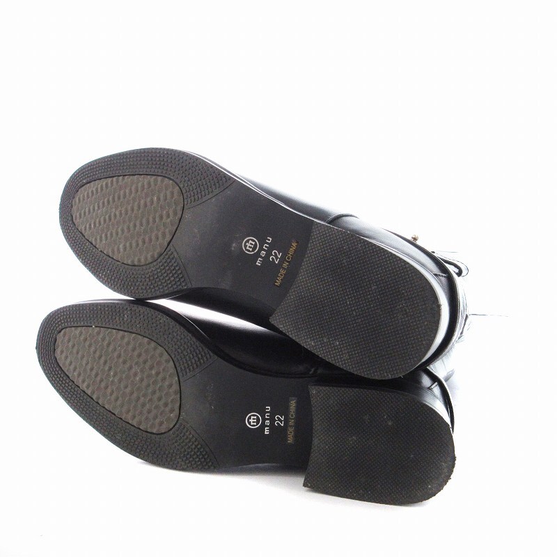 マニュ manu ロングブーツ ローヒール アーモンドトゥ ベルト 靴 シューズ 22cm 黒 ブラック /MM レディース