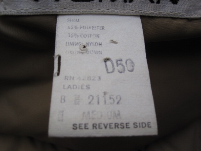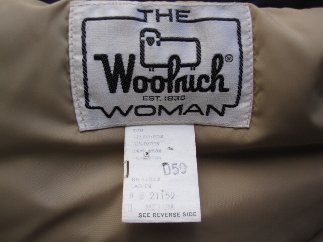 ビンテージ Woolrich ウールリッチ ダウンベスト レディースM ネイビー×ベージュ キャンプ アウトドア 古着 羊
