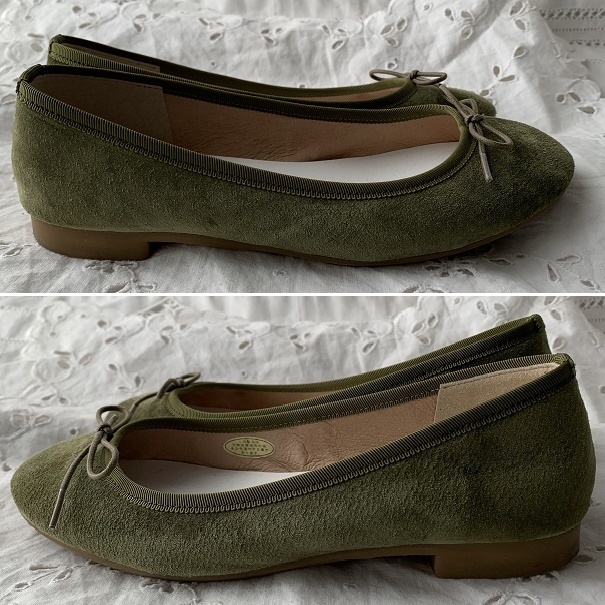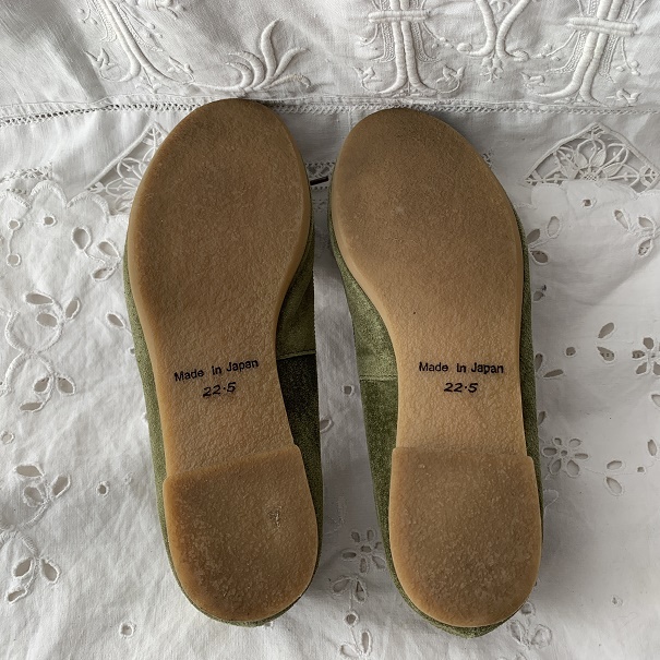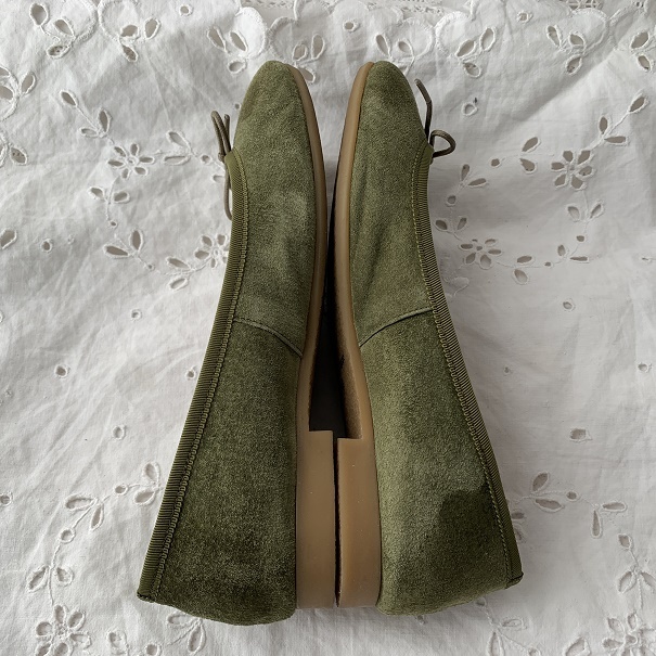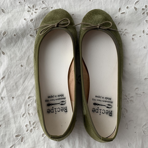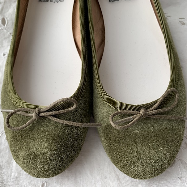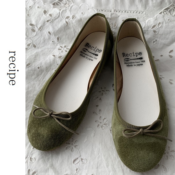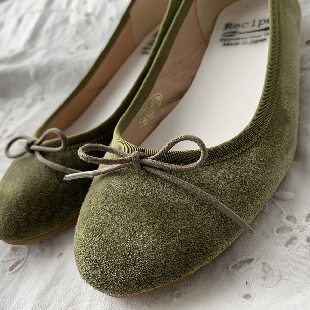 訳あり recipe レシピ バレエシューズ スエード 緑 グリーン  フラット リボン