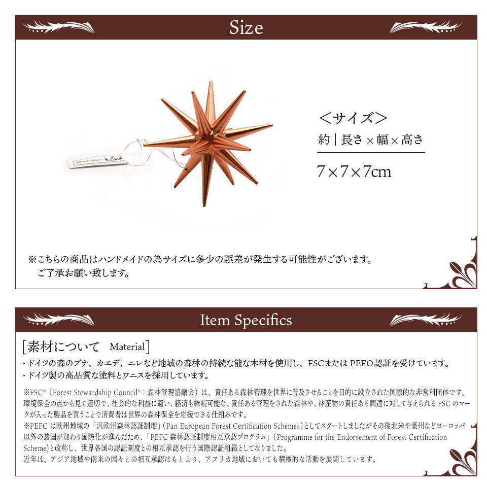 Albin Preissler,アルビン・プライスラー,ドイツ直輸入,クリスマスツリー飾り付け,クリスマスツリー,クリスマスイルミネーション,クリスマス雑貨,christmas,christmastree,オーナメント,ブナ,無垢材,ハンギングタイプ,コッパー,Sサイズ,6個入,正規品,シンプル,本物,おしゃれ