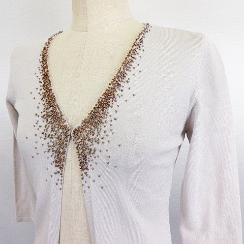 ヨンドシー 4℃ ニット カーディガン 七分袖 Vネック ビジュー ストレッチ 38 グレー系 ※EKM レディース