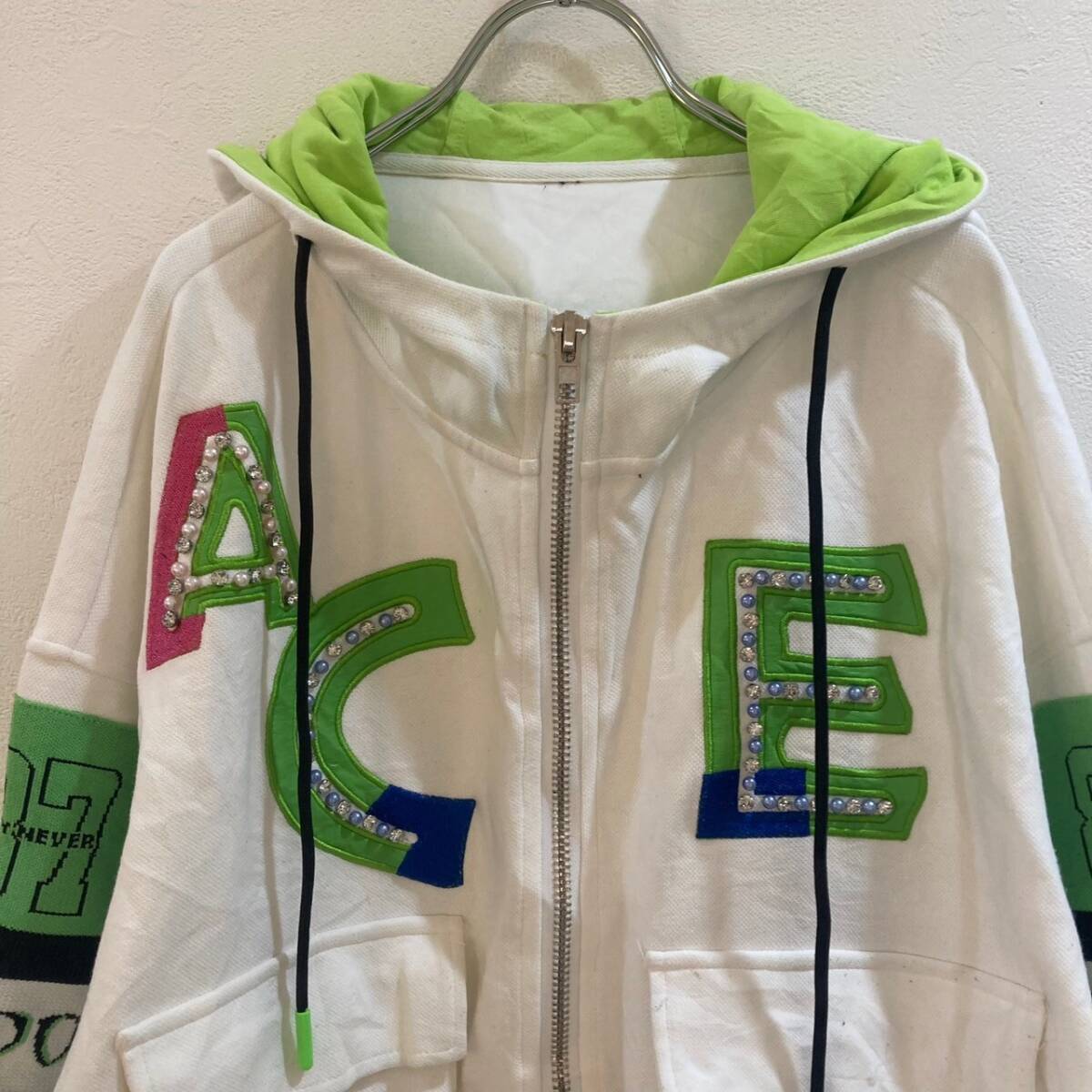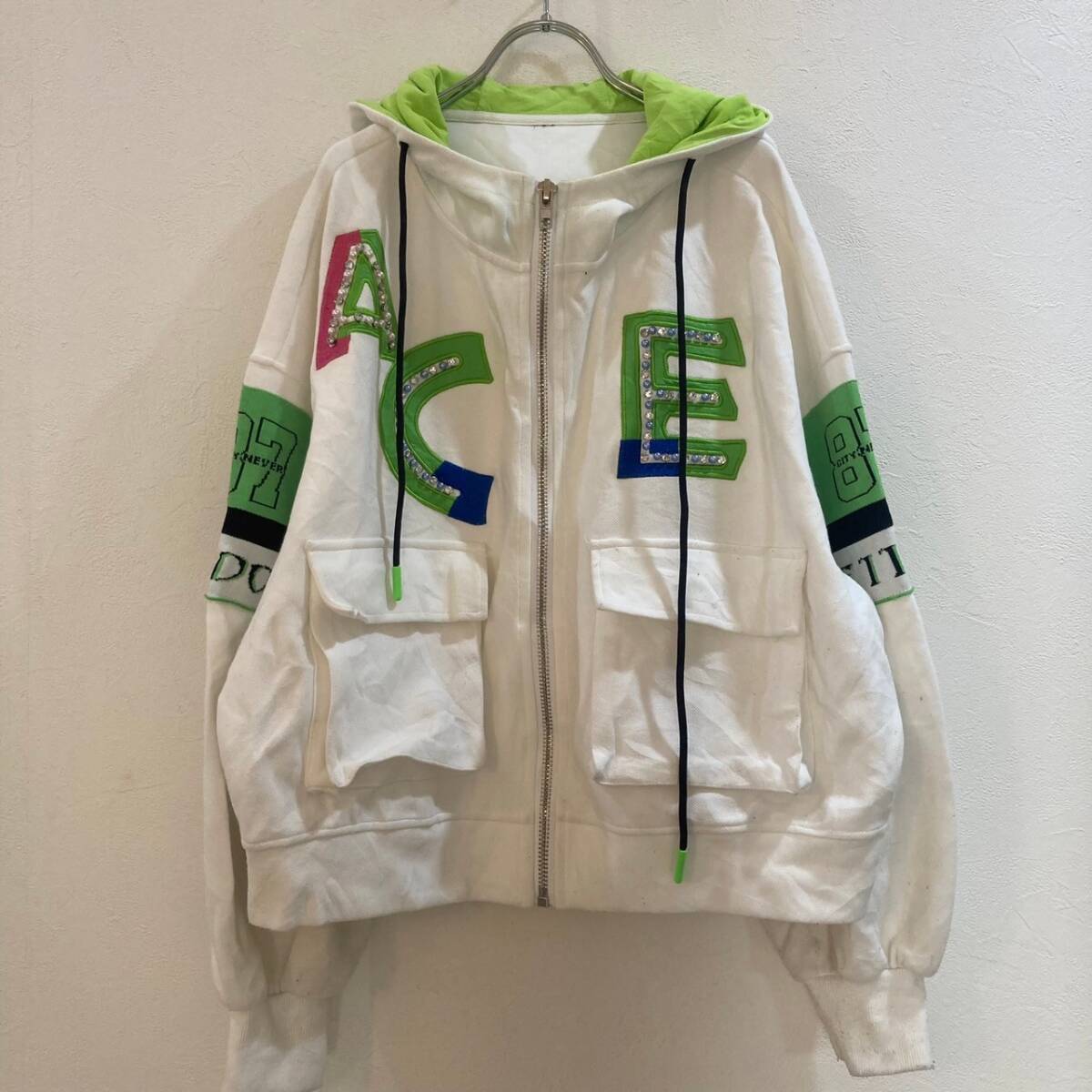 商品: PREGA/ 長袖ラインストーン付きパーカー ホワイト メンズ