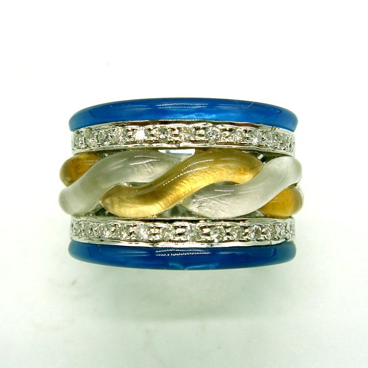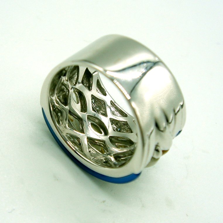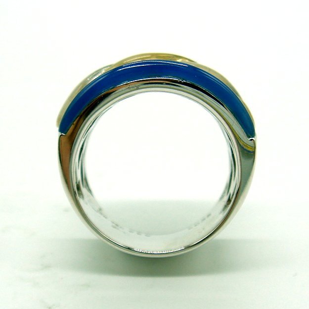 青水晶のラインに沿ったダイヤのラインは質の良いダイヤを使用しているため、良く光り製品に高級感を与えています。