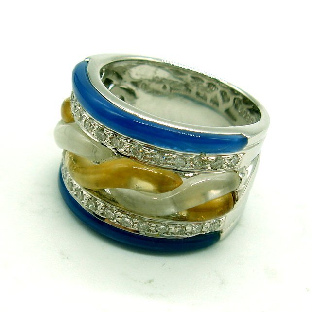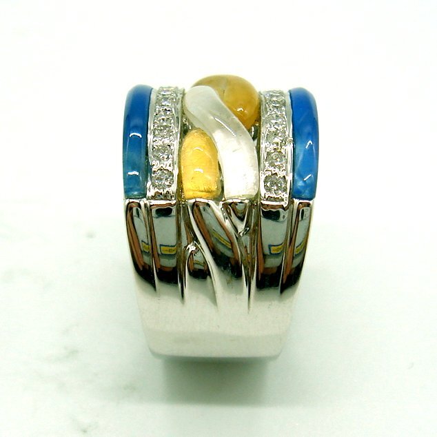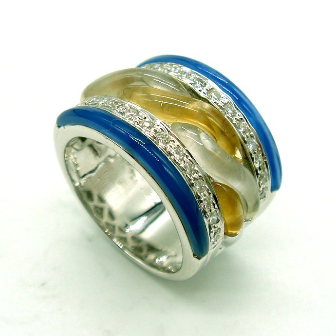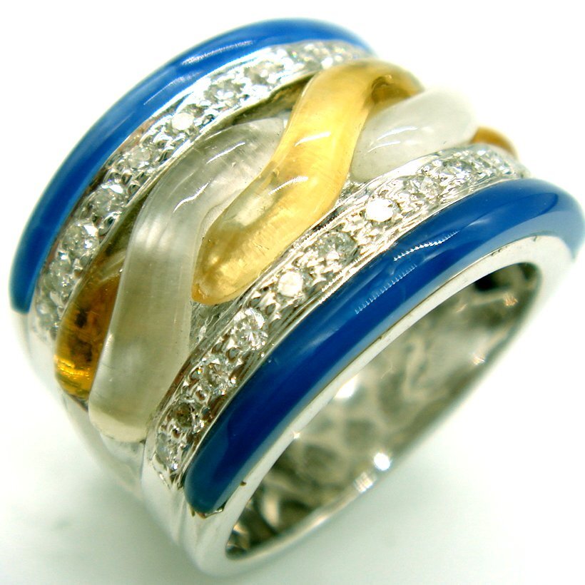 R963:K18WG 青/白/黄水晶 ダイヤ リング(#11.5)