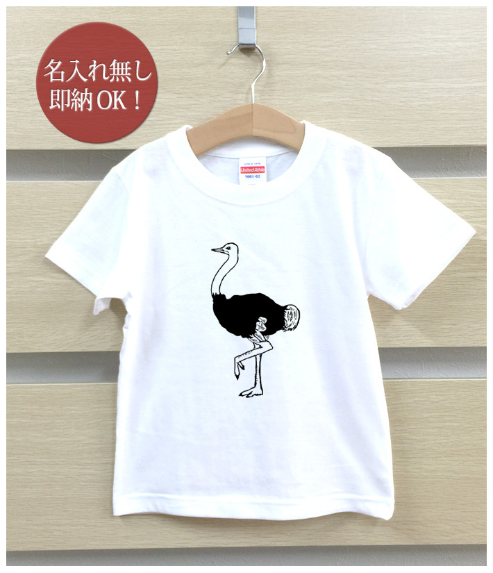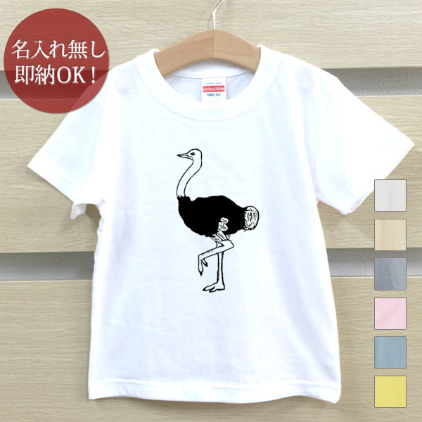 ダチョウのイラストが入るTシャツです。鳥好きのお子様へのプレゼントに♪