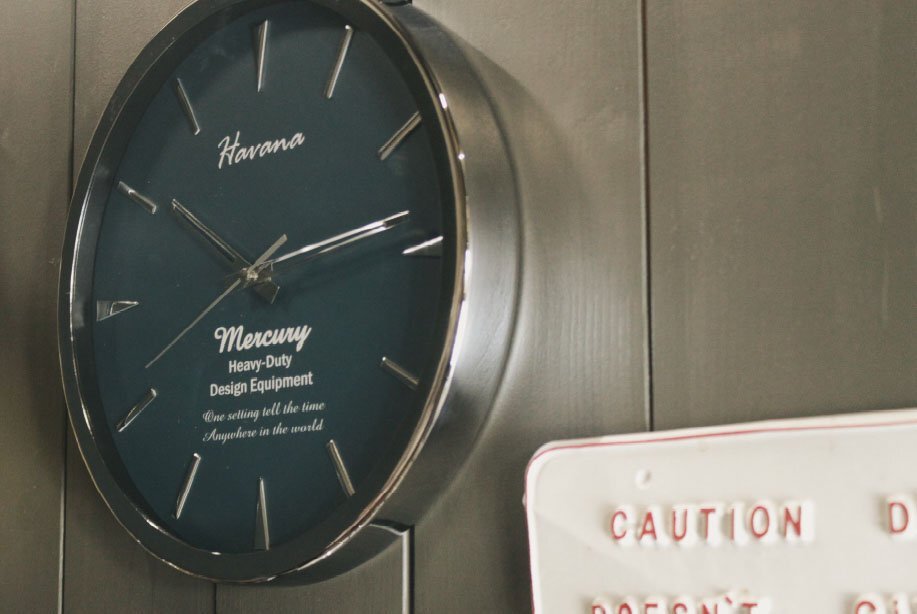 ヴィンテージ・アメリカンテイストがお洒落な雑貨ブランド、「MERCURY」のウォールクロックです。