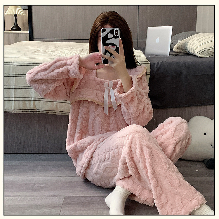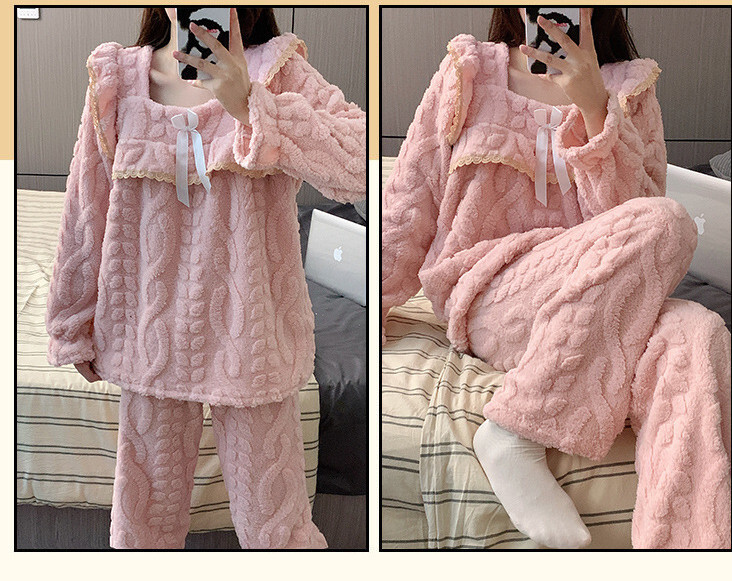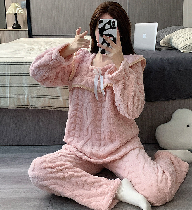 「冬の必需品!モコモコ防寒パジャマ レディース あったかゆったり上下セット 部屋着にもぴったり」