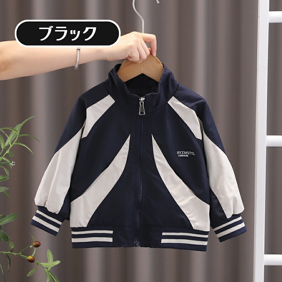 商品名 | ブラック 120cm 袖口リブ付き スタジャン 長袖 ジャンパー シャカシャカ素材 ウィンドブレーカー キッズ ベビー 男の子 女の子 かっこいい 韓国子供服 |