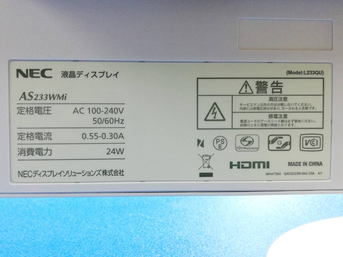【送料無料】NEC 液晶ディスプレイ モニター 23インチワイド HDMIケーブル付属(新品) フルHD LCD-AS233WMi (管理NoU114B)
