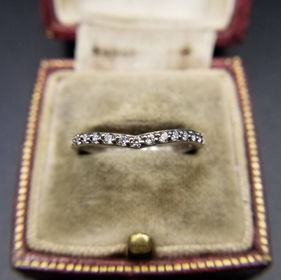 キュービックジルコニア V字 925 シルバー ヴィンテージ リング 銀 指輪 ハーフエタニティ シンプル 上品 細幅 AAX-4②