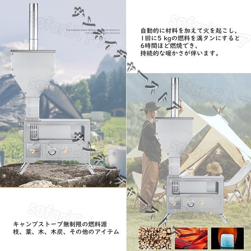 ●自動的に材料を加えて火を起こし、1回に5 kgの燃料を満タンにすると6時間ほど燃焼でき、持続的な暖かさが伴います。 約5 kg収容があります。