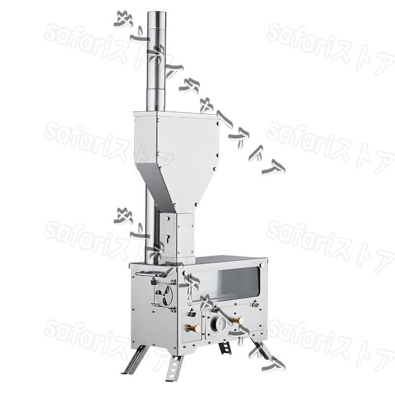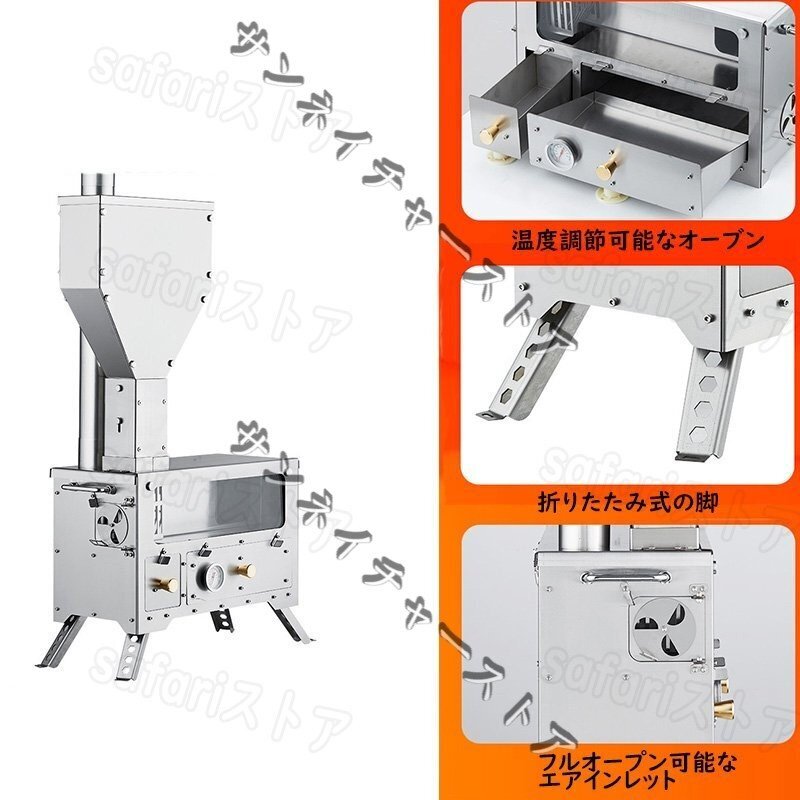 薪ストーブ ペレットストーブ 自己吸入・排煙 多機能ストーブ オーブン ガラス窓 炉脚折りたたみ収納 煙突付き 暖炉 アウトドア キャンプ