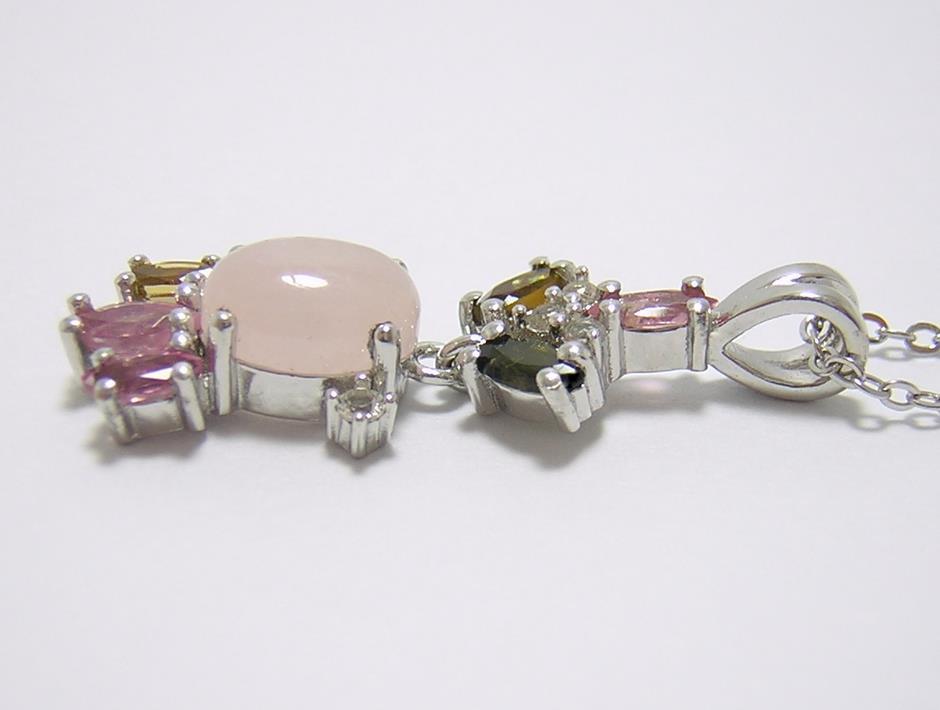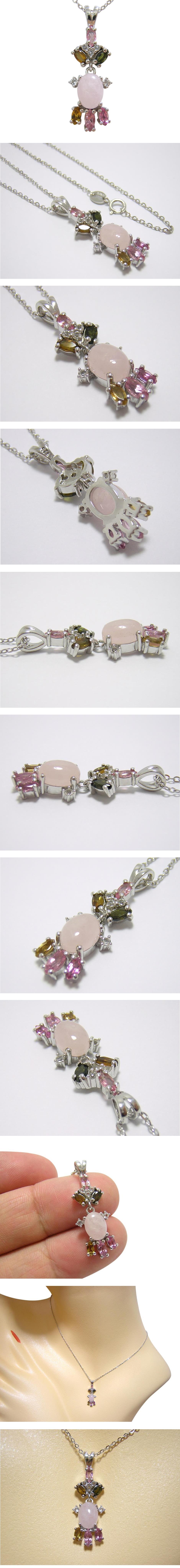 | 天然モルガナイトとマルチカラートルマリン、キュービックジルコニアを使用したペンダントネックレスです。