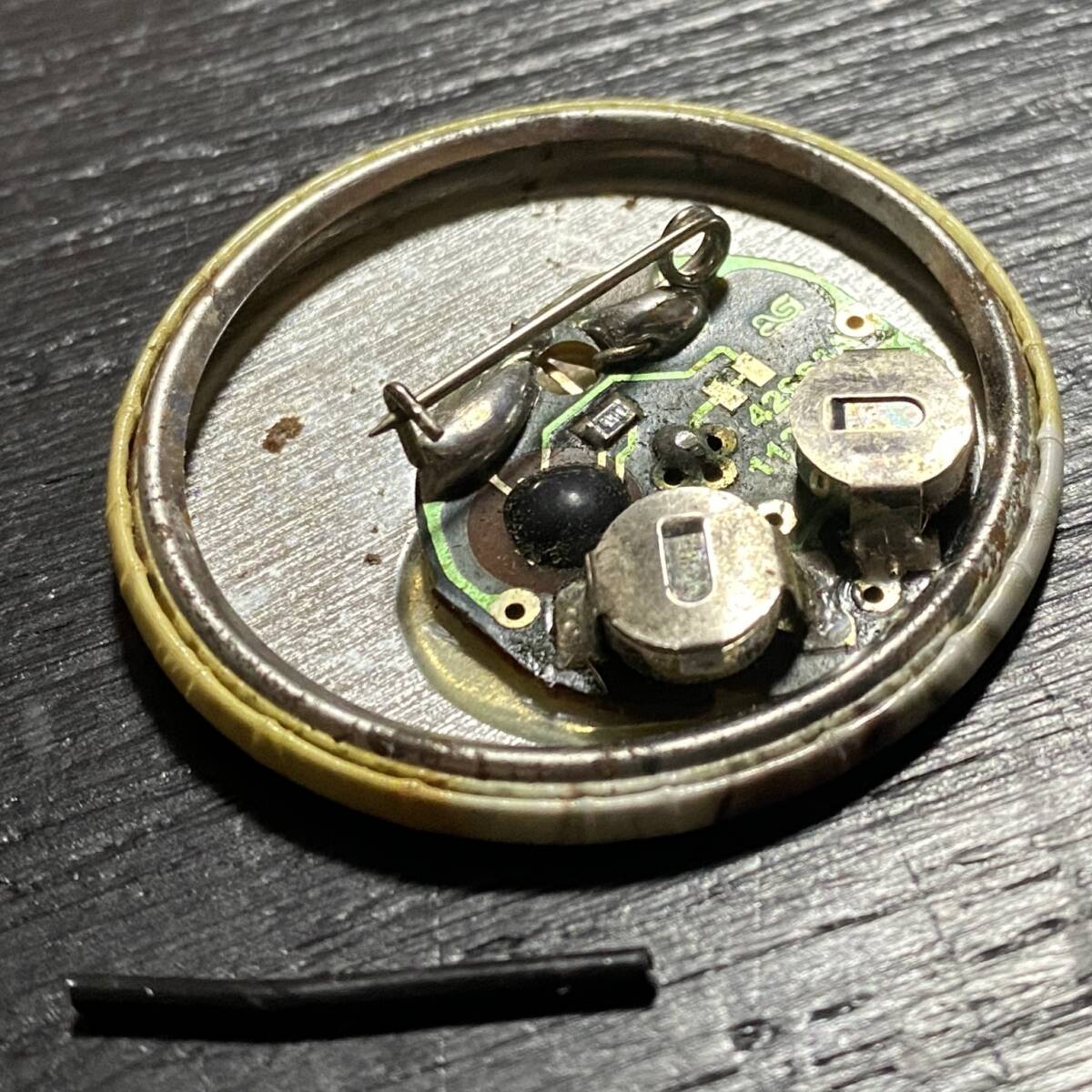 商品説明 | ■商品説明■ アメリカで使われていた物です。WANTED DEAD OR ALIVE バッジです。「ALIVE」の部分に赤線が引かれているのがいいですね。2001年~2011年頃の物だと思います。 針のビニールチューブを外すと中央の電球が光る物だったようですが、電池切れか故障なのか分かりませんが光りません。現状でのお渡しとさせていただきます。 ■サイズ(誤差あり。およそのサイズです。) 約4.4cm前後 ■素材: 金属 製 ■状態 :針のビニールチューブを外すと中央の電球が光る物だったようですが、電池切れか故障なのか分かりませんが光りません。キズ、擦れ、汚れ、形状の歪み、へこみ、くすみ、サビ、キズ、ヤケ、黄ばみ、色あせ、擦れ、印刷の薄れや消え、色剥げ、色移り 等の経年感、使用感がございます。見落としはご容赦くださいませ。 ※現物の色が画像にうまく出ておりません。現物の色や状態が画像にうまく出ないことがございます。色褪せ、ヤケ、黄ばみ等は特に画像に出にくいです。画像は素人が撮影しております。ご覧になっているPCのモニタやスマホ等の画面と現物の色味が異なる場合や現物よりきれいに状態良く写ってしまうことがございますが予めご了承くださいませ。 状態について過度に神経質な方には不向きです。汚れやダメージ箇所の全てを画像に載せたり説明することは困難です。画像や状態説明では確認できない使用に支障が無い範囲においての汚れ、キズ、スレ、ヤケ、黄ばみ等があるかもしれませんことを、画像と現物の色味に差がありますことを予めご理解ご了承いただいた上での入札をお願いいたします。クレームや返品・返金・交換等はお受けできません。不安な方は申し訳ございませんが入札はお控えくださいますようお願いいたします。 ご不明な点、ご要望等(対応できないかもしれませんが)がございましたら必ず入札前にお問い合わせくださいませ。 | |