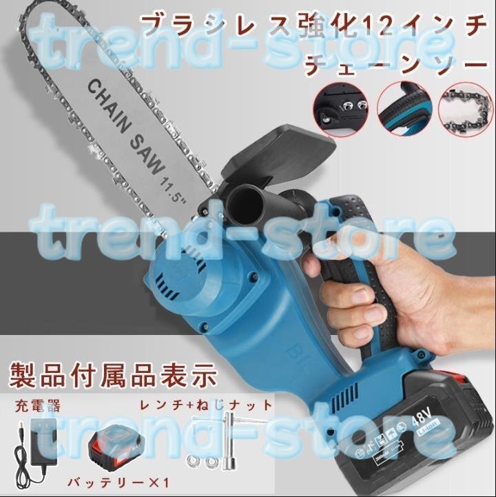 充電式チェーンソー 電動コードレスチェーンソー 12インチ ガイドバー ブラシレスモーター 自動給油 強力 木工切断 剪定ばさみ U159