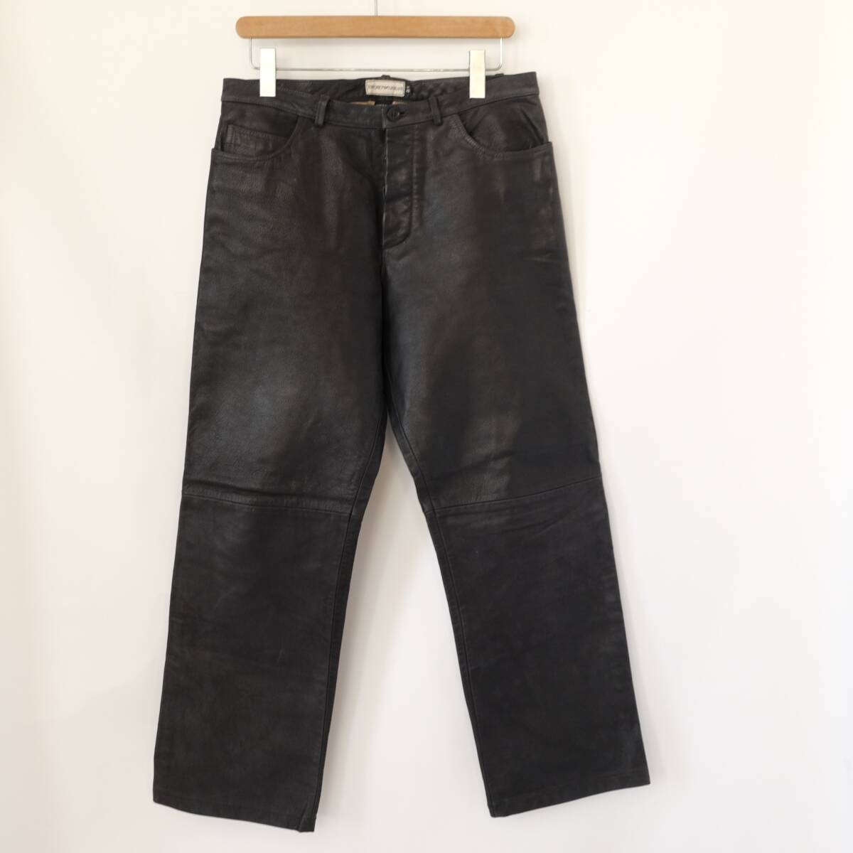 【 EMPORIO ARMANI 】エンポリオアルマーニ イタリア製 オール レザーパンツ / ブラック 黒 / 48 / 本革