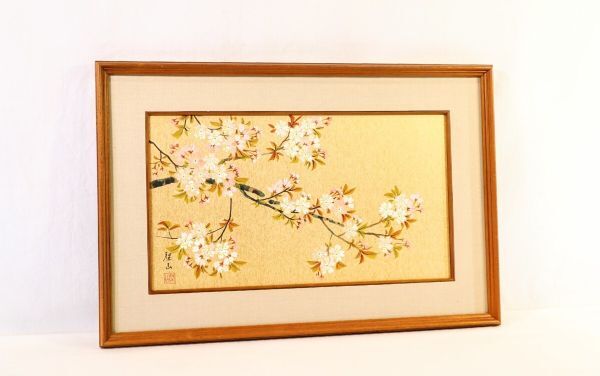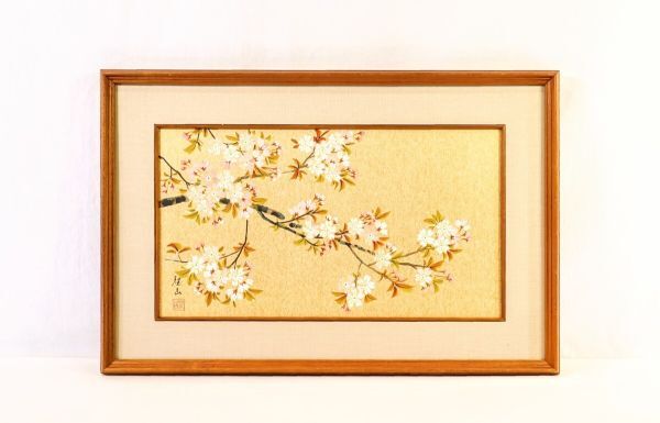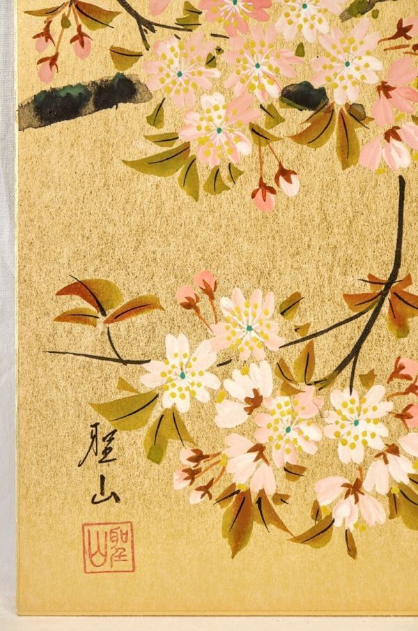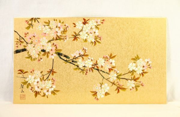 真作 葛谷聖山 日本画「桜花図」画寸 48cm×27cm 岐阜県出身 東洋美術会会員 坪内節太郎 小島紫光 北川五郎に師事 華やか繊細な筆致 10191