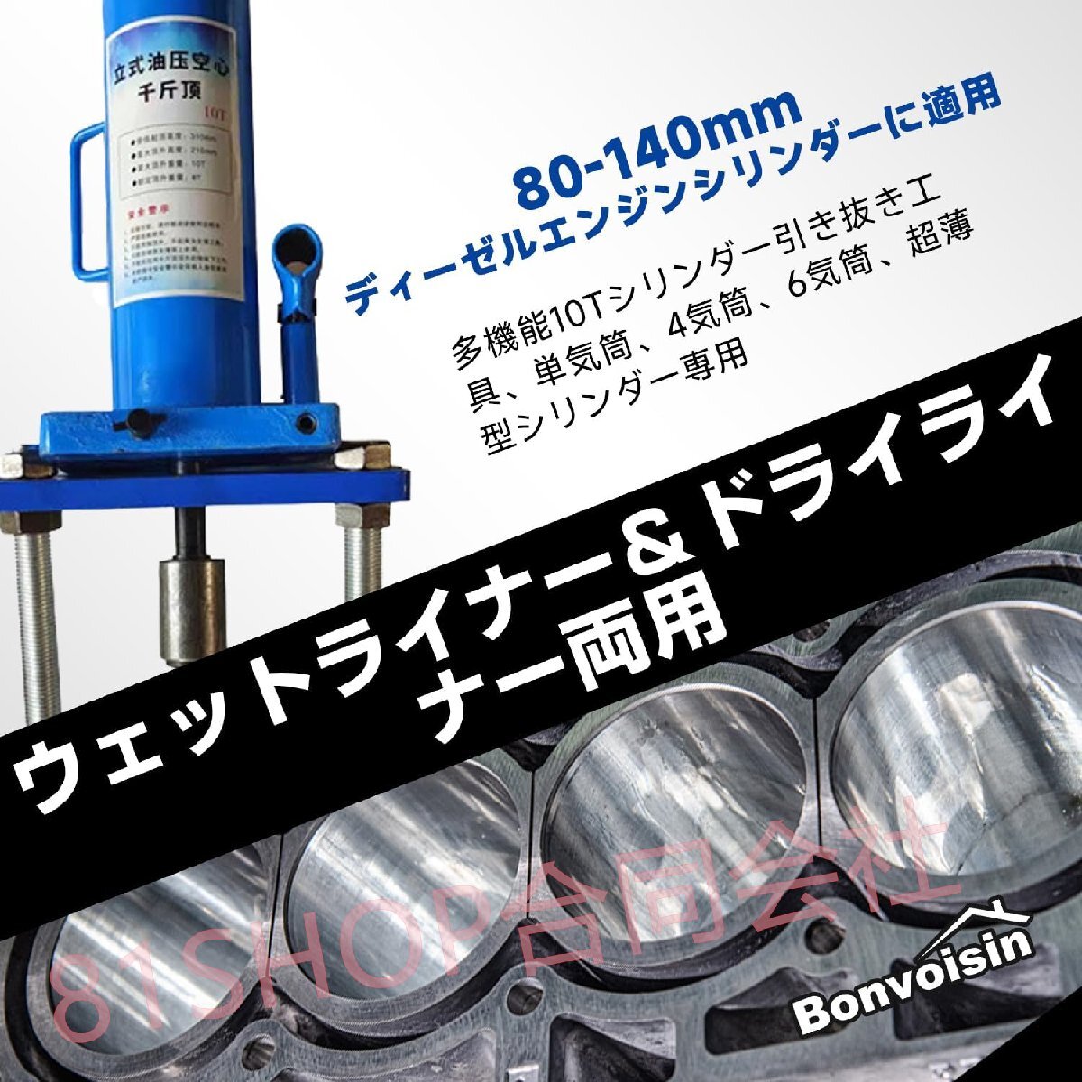 「81SHOP」ライナープーラー シリンダーライナープーラー 10T 油圧式 1台2役 ジャッキ 機能付き 直径80-140mm適応 ボルトジャッキ ディー