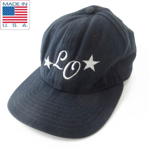 スナップバックタイプのサイズ調節ベルト付き。スナップバックにMADE IN USA記載入り。