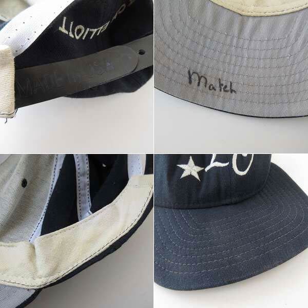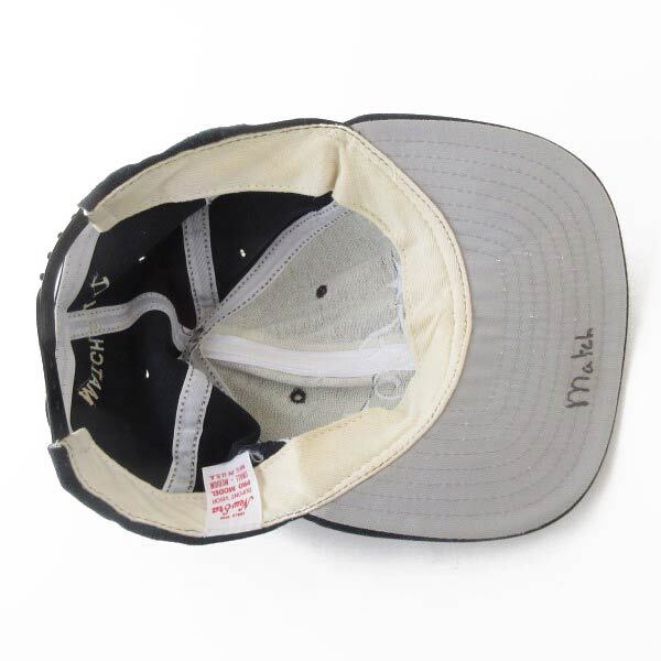 背面にネーム刺繍入りで、ツバ裏には同名のマジック書き入り。