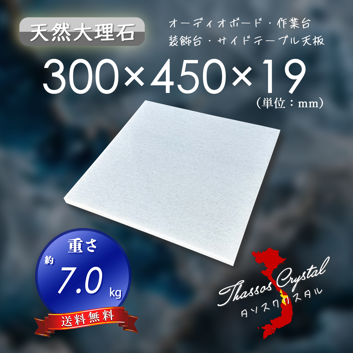 【高級天然大理石】 オーディオボード 台座 白系 タソスクリスタル 300mm×450mm×19mm 5面磨き 新品 即決 送料無料 ★超特価★