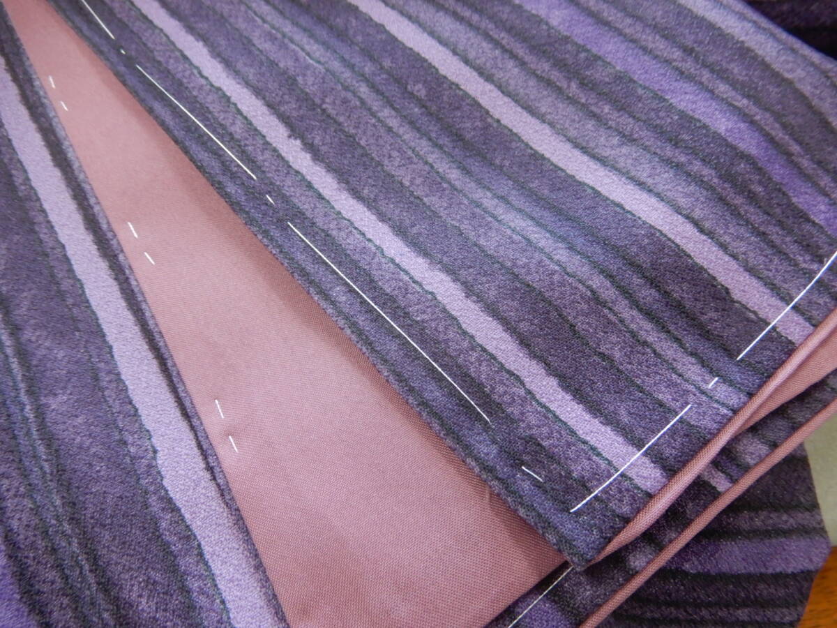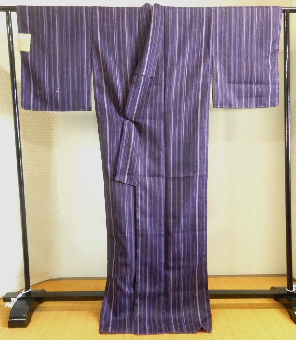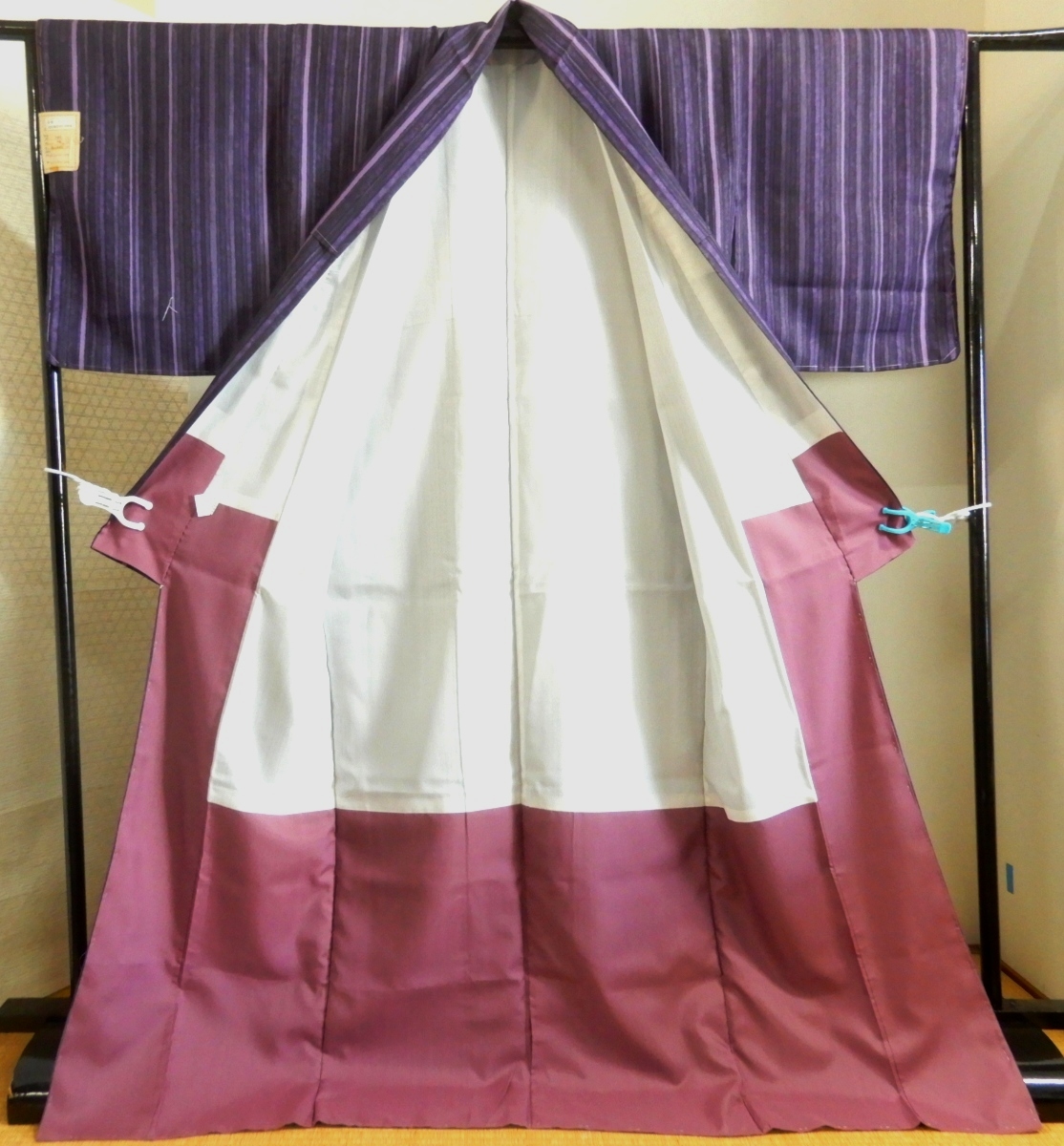 <銀の斧>未使用品・しつけ付き洗える着物・ポリエステル袷着物・紫色系・既製品