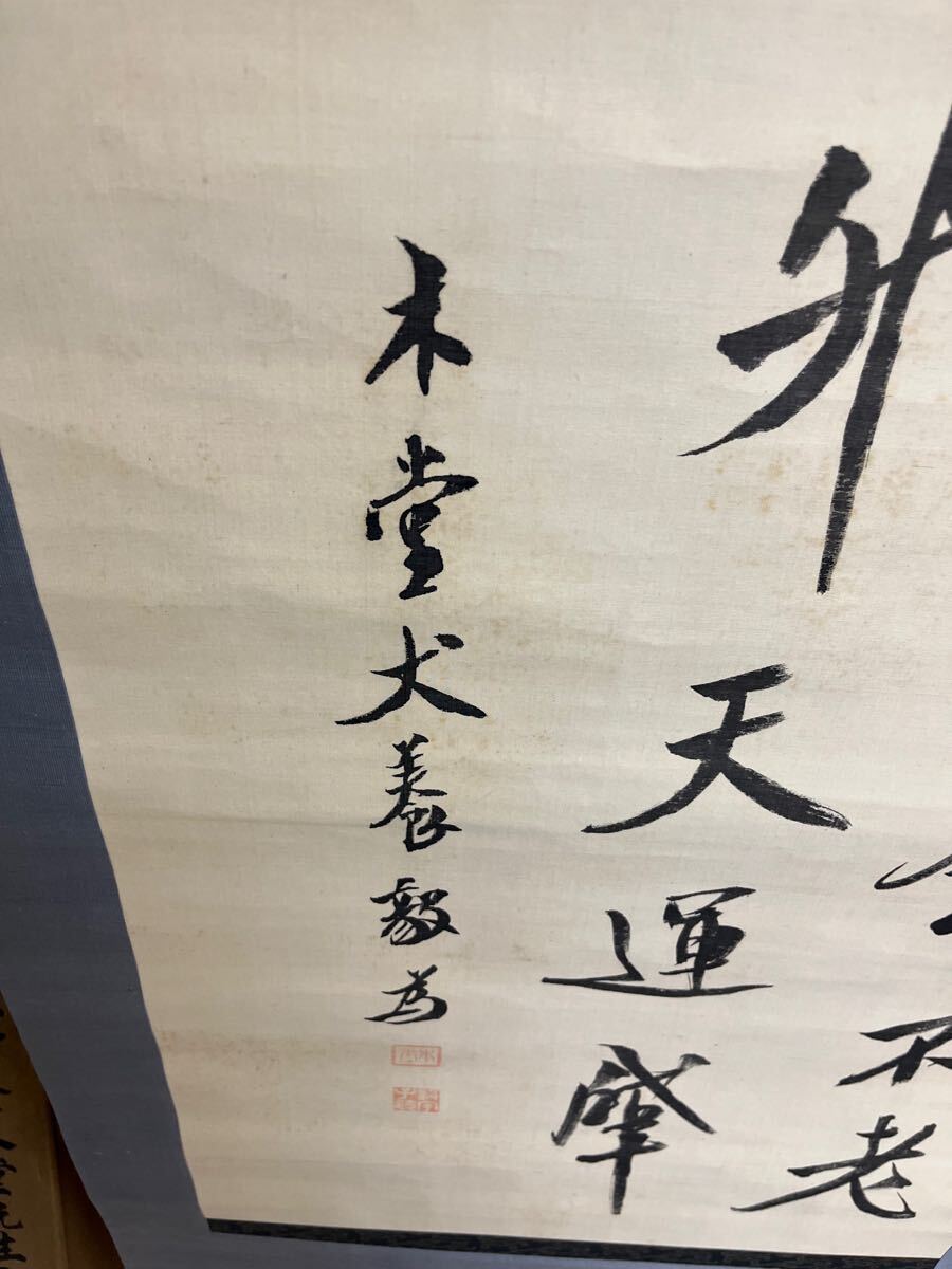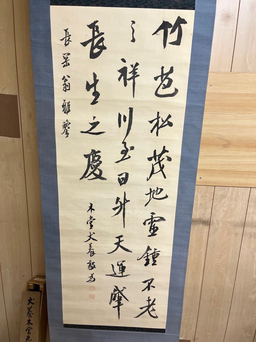 200×54 ニ九代 内閣総理大臣 犬養毅 犬養木堂 掛軸  書 三行書 本物保証 岡山県 合箱 五一五事件