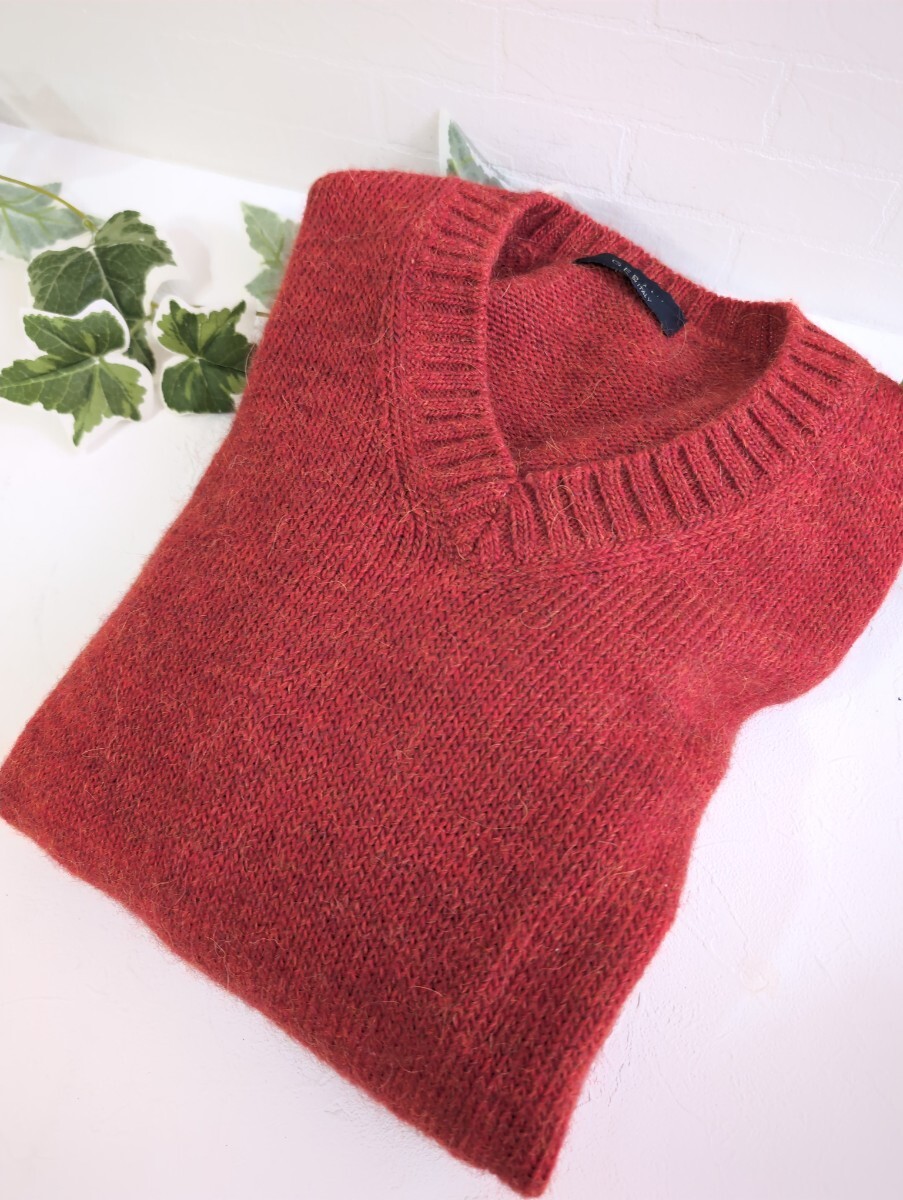 鮮やかな発色がイタリアニットらしい素敵なVネックセーターの出品です。
