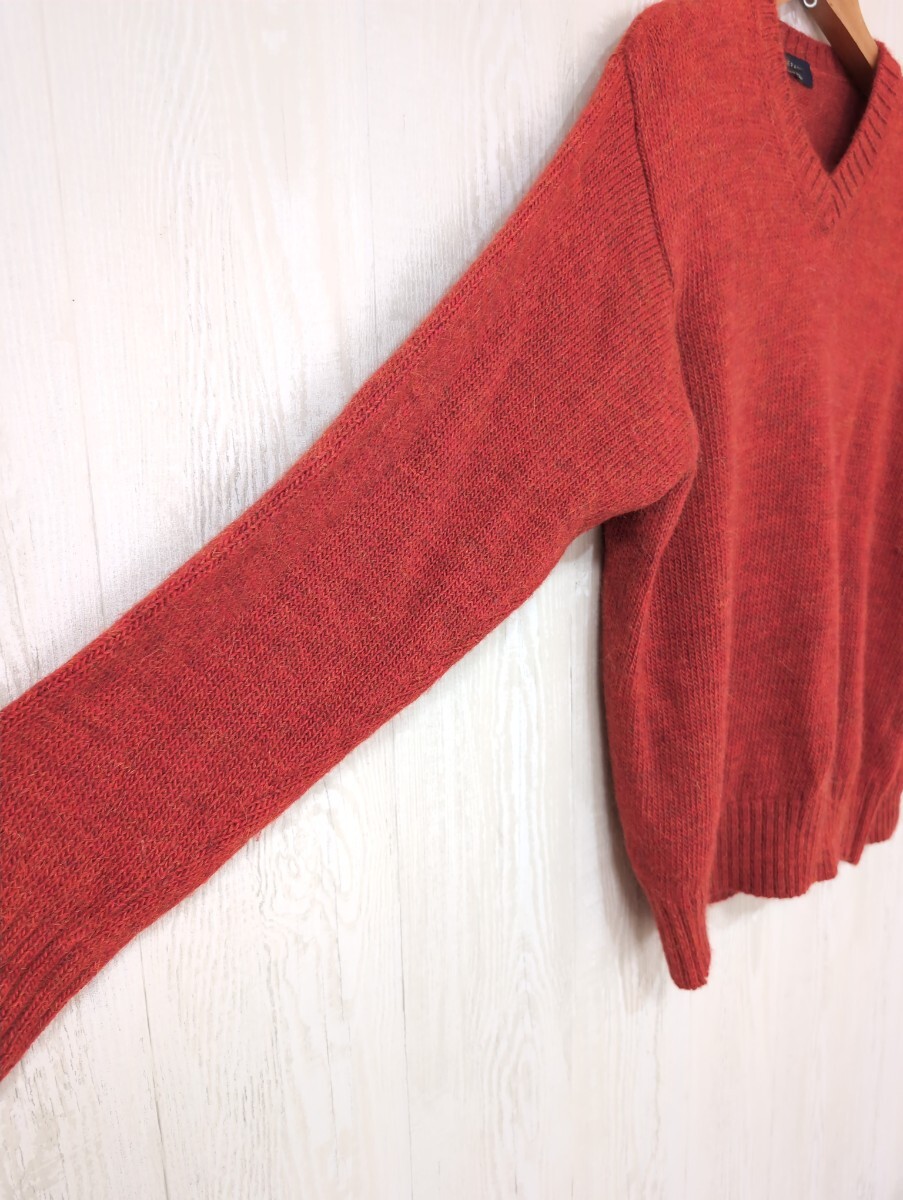 GERANI レナウン GILMAR イタリア製 メンズ セーター Vネック 赤橙色 レッド オレンジ アルパカ60% 秋冬物 長袖 ビンテージニット 古着
