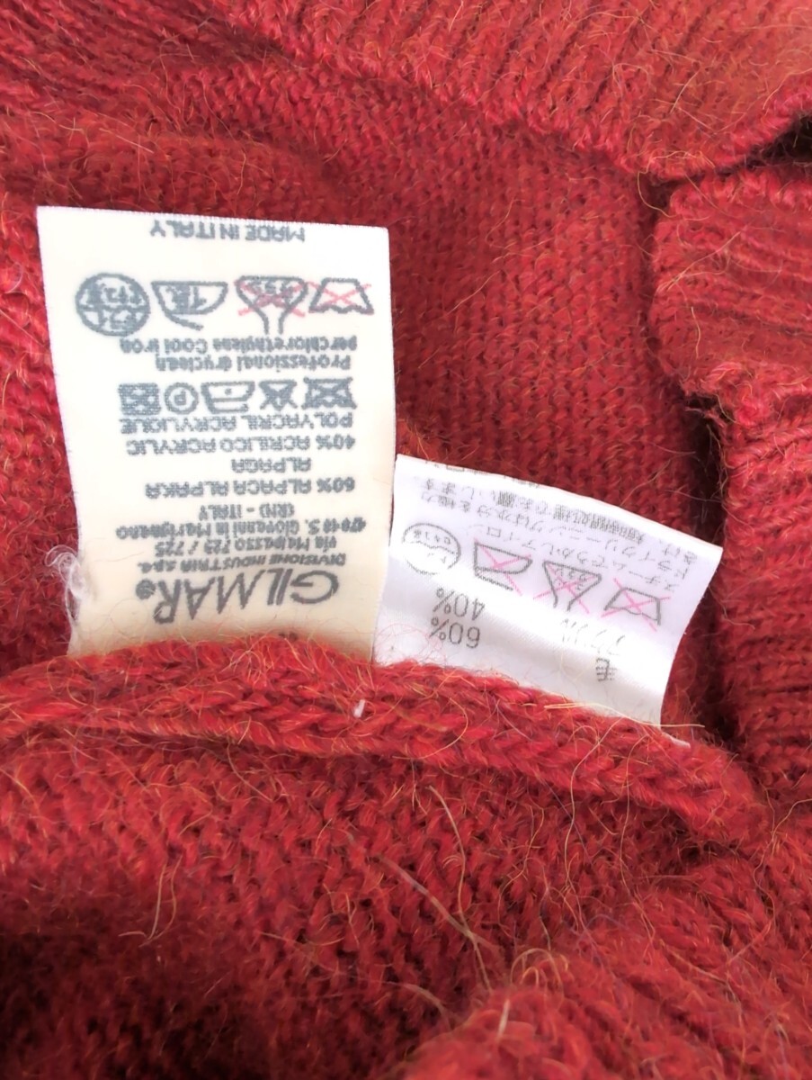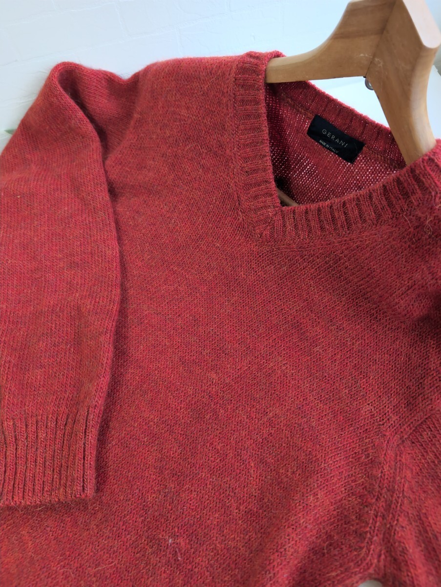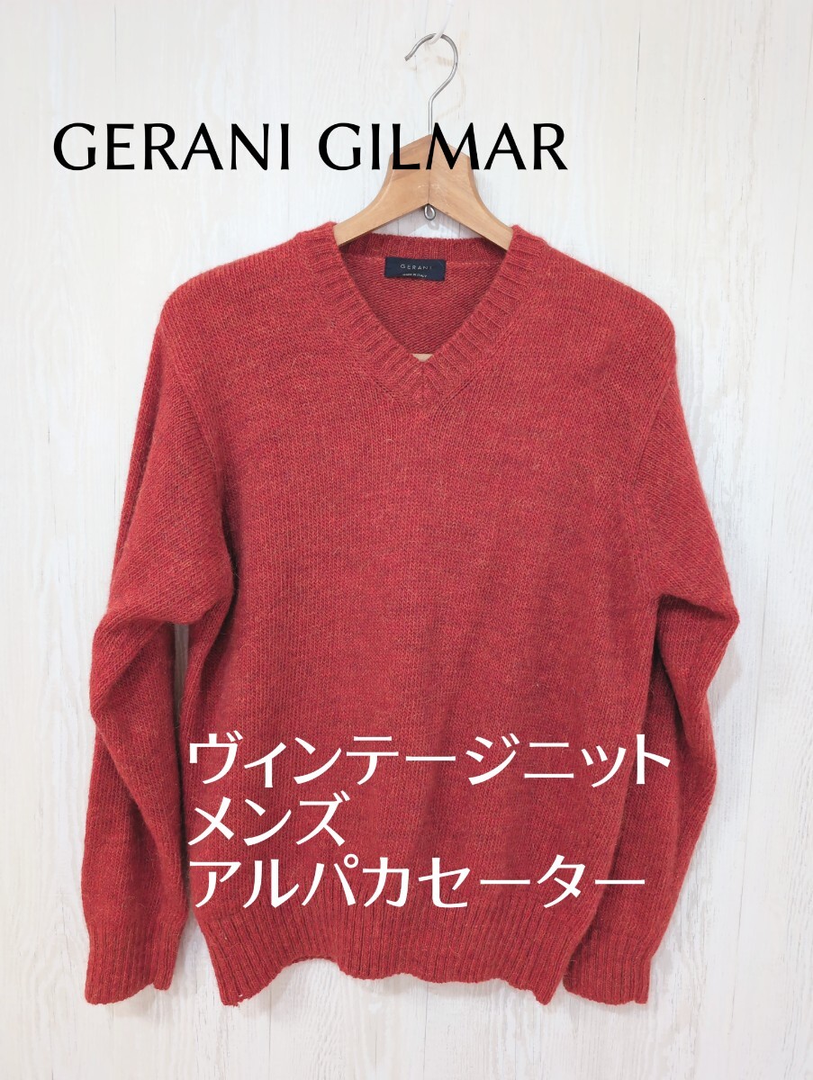 GERANI レナウン GILMAR イタリア製 メンズ セーター Vネック 赤橙色 レッド オレンジ アルパカウール60% 秋冬物 長袖 程度良好 古着