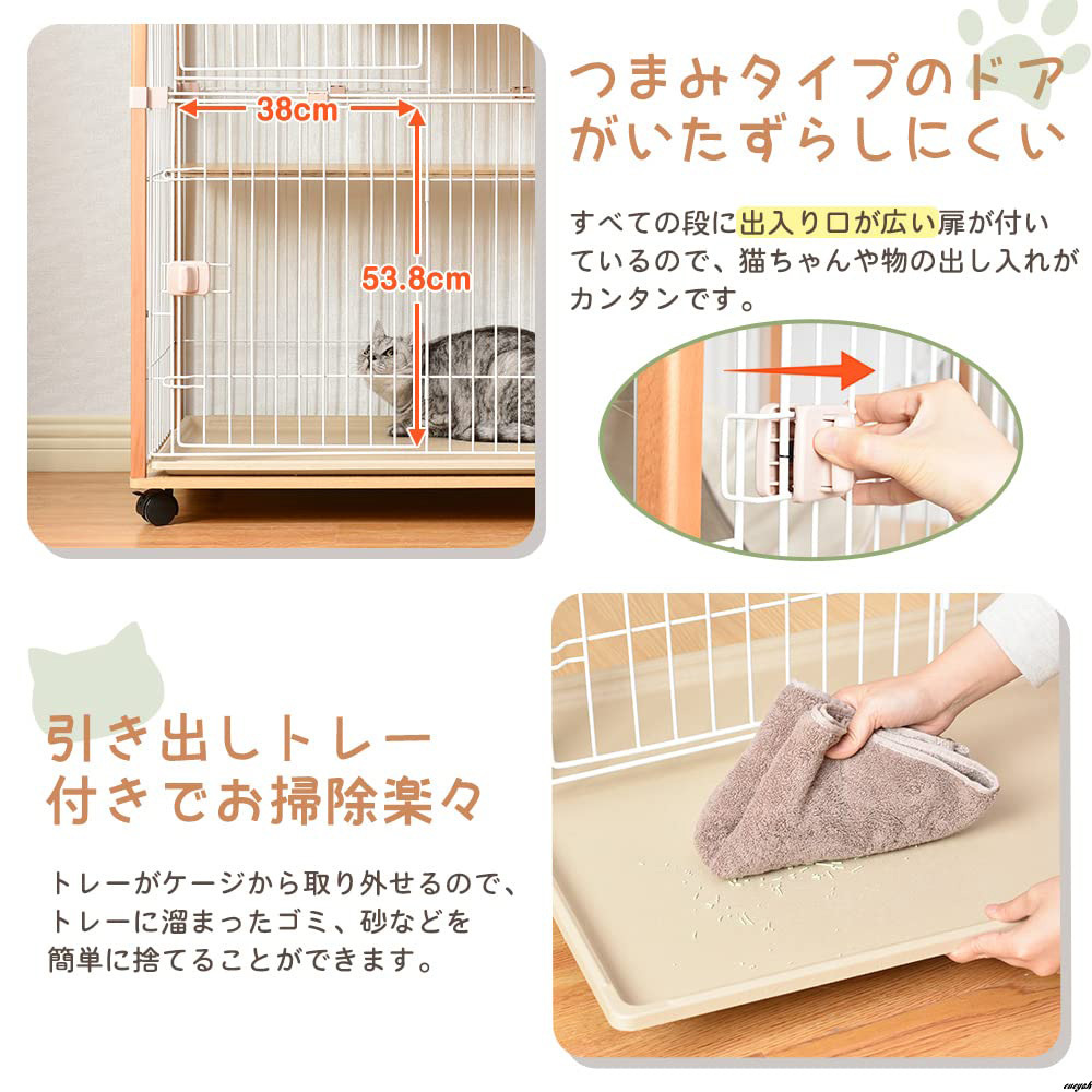 天然木フレームを採用した、おしゃれで頑丈な2段式キャットケージです。