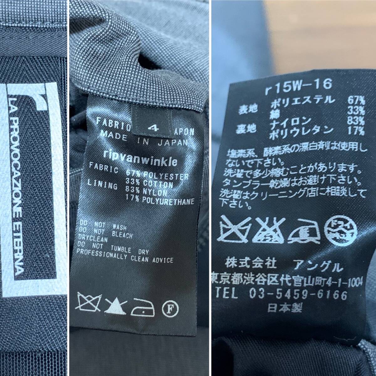 [r ripvanwinkle] 定価51,700 ジャージースウィングトップ ストレッチジャケット 4 グレー r15w-16 日本製 アール リップヴァンヴィンクル